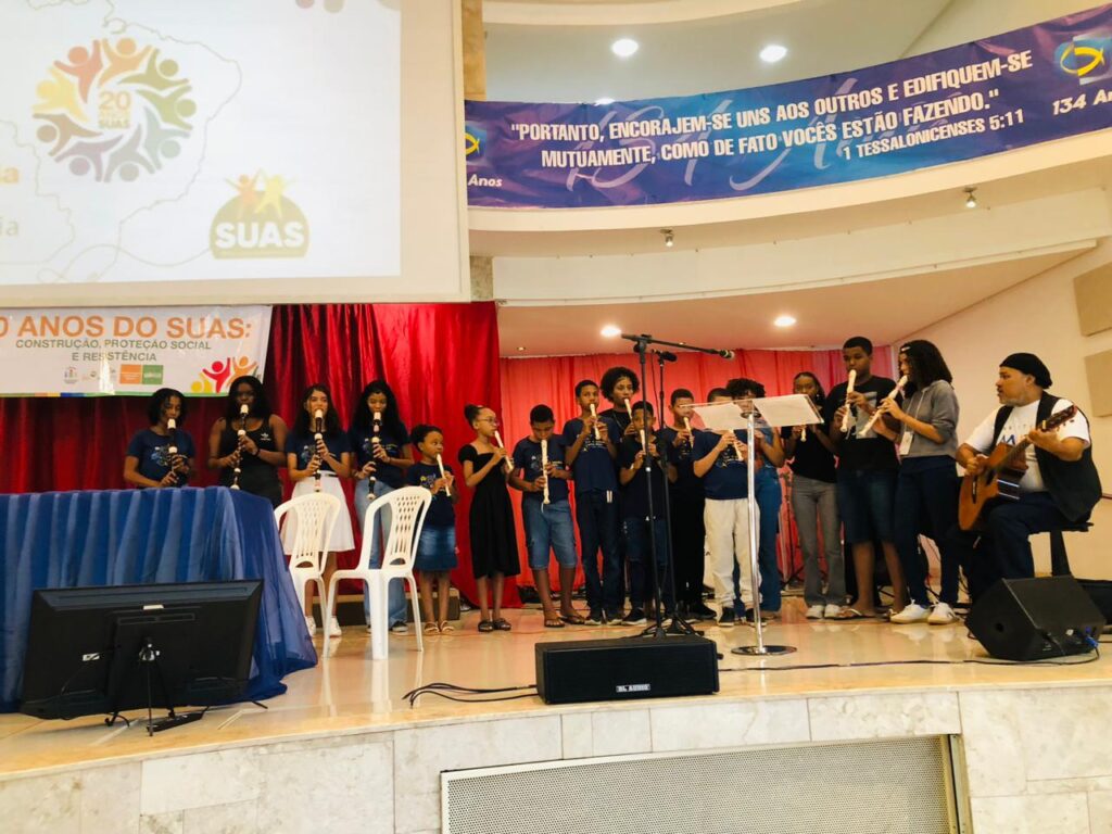 Nos dias 22 e 23 de julho, estivemos presente na 15ª Conferência Municipal de Assistência Social, realizada pela Secretaria de Promoção Social com o objetivo de avaliar, discutir e fortalecer as políticas públicas no âmbito do Sistema Único de Assistência Social (SUAS).A abertura do evento foi marcada por uma belíssima apresentação da nossa oficina de musicalização, que trouxe sensibilidade e cultura para iniciar os trabalhos da conferência, reforçando o papel da arte como instrumento de inclusão e transformação social. Com o tema “20 anos do SUAS: Construção, Proteção Social e Resistência”, a conferência contou com uma palestra magna que proporcionou reflexões profundas sobre os avanços, desafios e a importância da consolidação do SUAS ao longo dessas duas décadas. Durante a programação, nossa equipe participou ativamente dos grupos de trabalho, onde foram debatidos os eixos temáticos, elaboradas propostas e realizada a escolha dos delegados que representarão o município nas etapas seguintes da conferência. A participação do Instituto Mutá reforça nosso compromisso com o fortalecimento das políticas públicas, com a garantia de direitos e com a promoção de uma assistência social cada vez mais efetiva, humana e transformadora. Seguimos firmes na construção de uma assistência social mais forte, humana e transformadora!