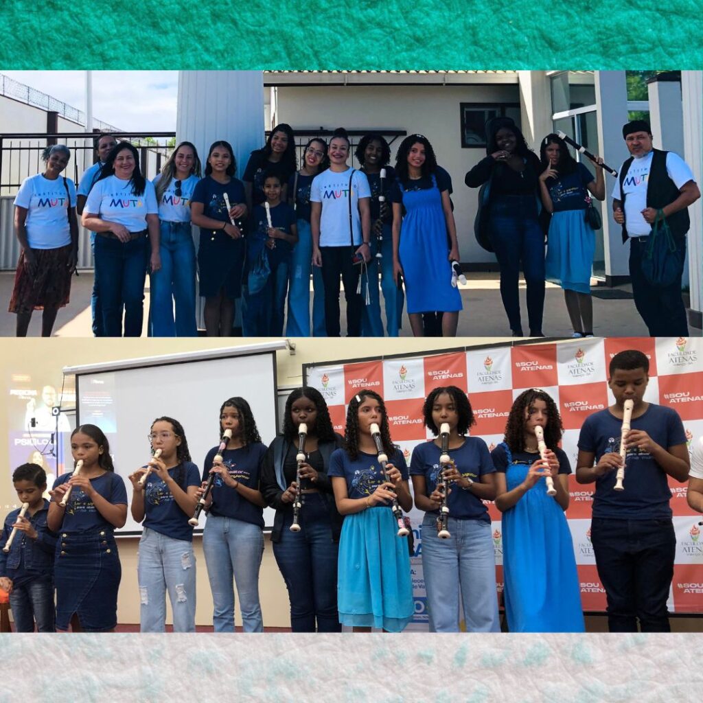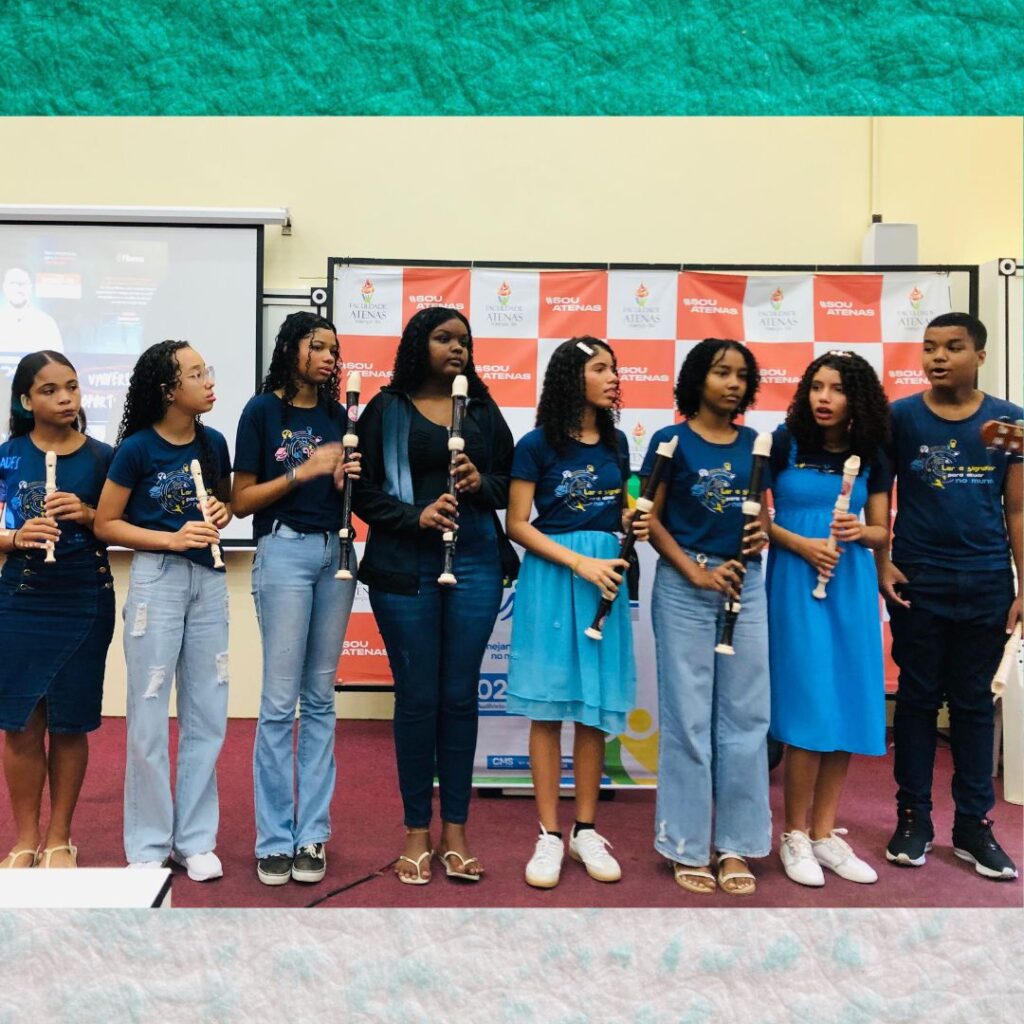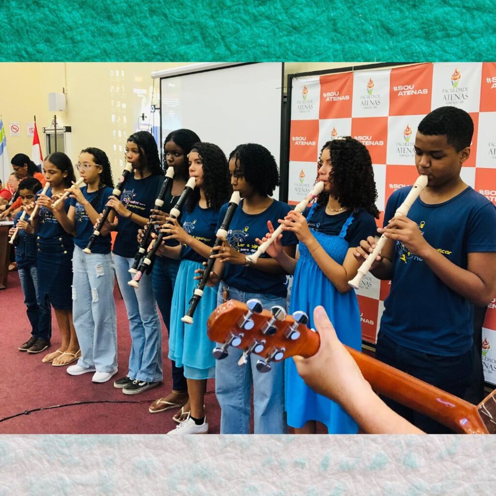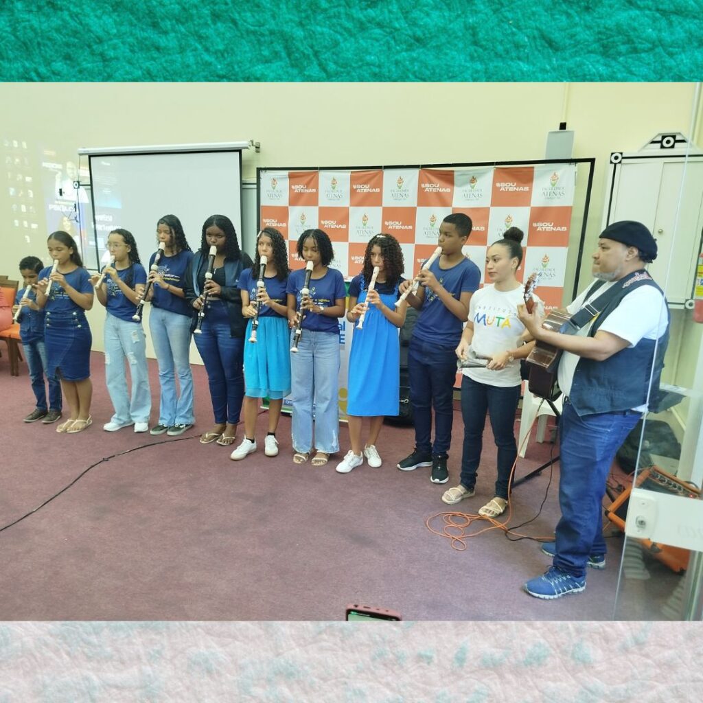 No último sábado, 02 de agosto, nossos alunos da oficina de musicalização encantaram o público com uma belíssima apresentação durante a 9ª Conferência Municipal de Saúde, realizada na Faculdade de Medicina Atenas. Foi um momento especial em que arte, educação e saúde se uniram em harmonia, fortalecendo a cidadania e o bem-estar coletivo. Com muito talento, sensibilidade e dedicação, eles demonstraram que a cultura é uma poderosa ferramenta de transformação social. Agradecemos pelo convite e pela oportunidade de participar desse espaço tão importante de diálogo e construção coletiva.