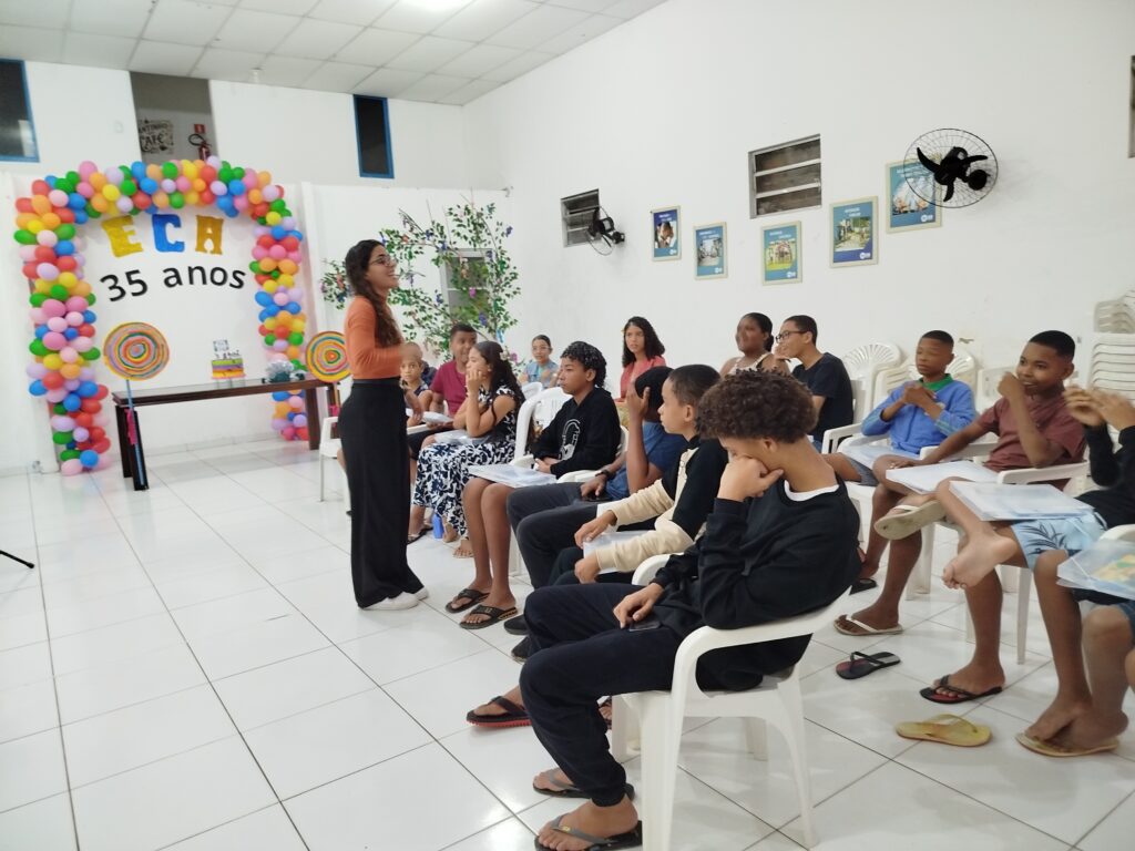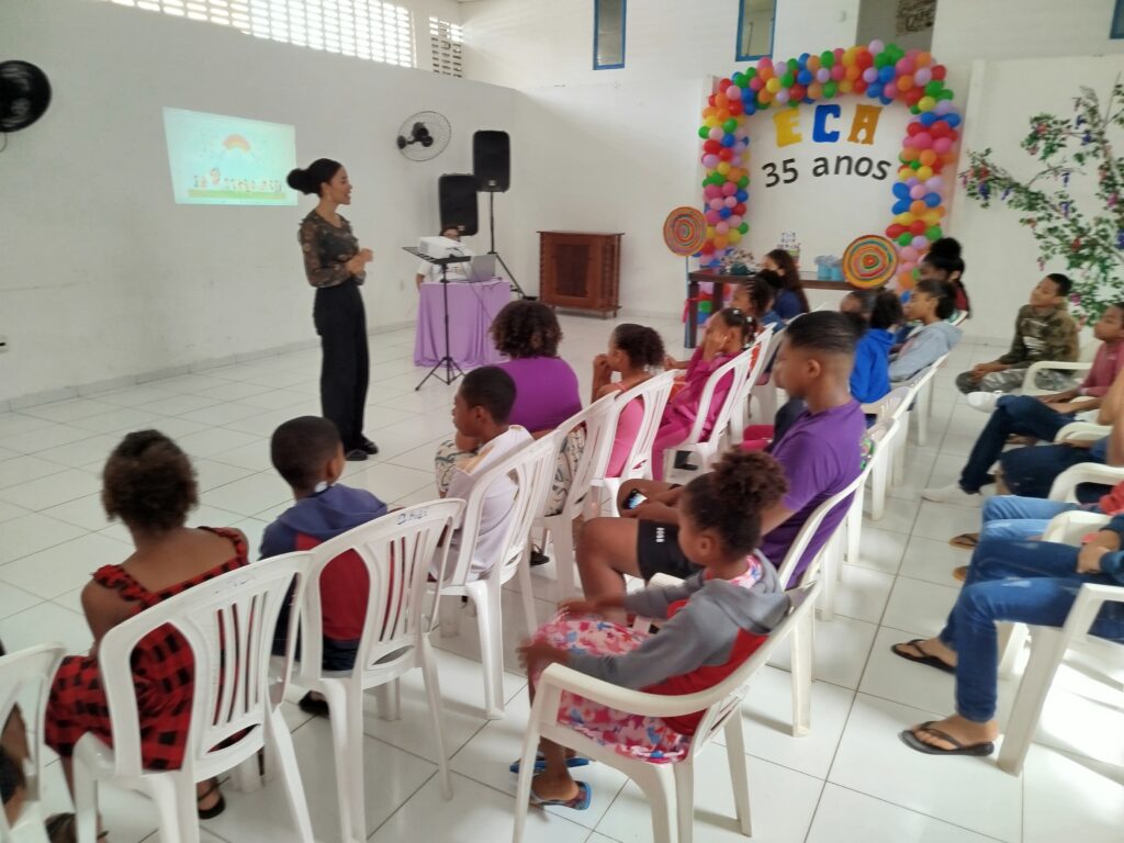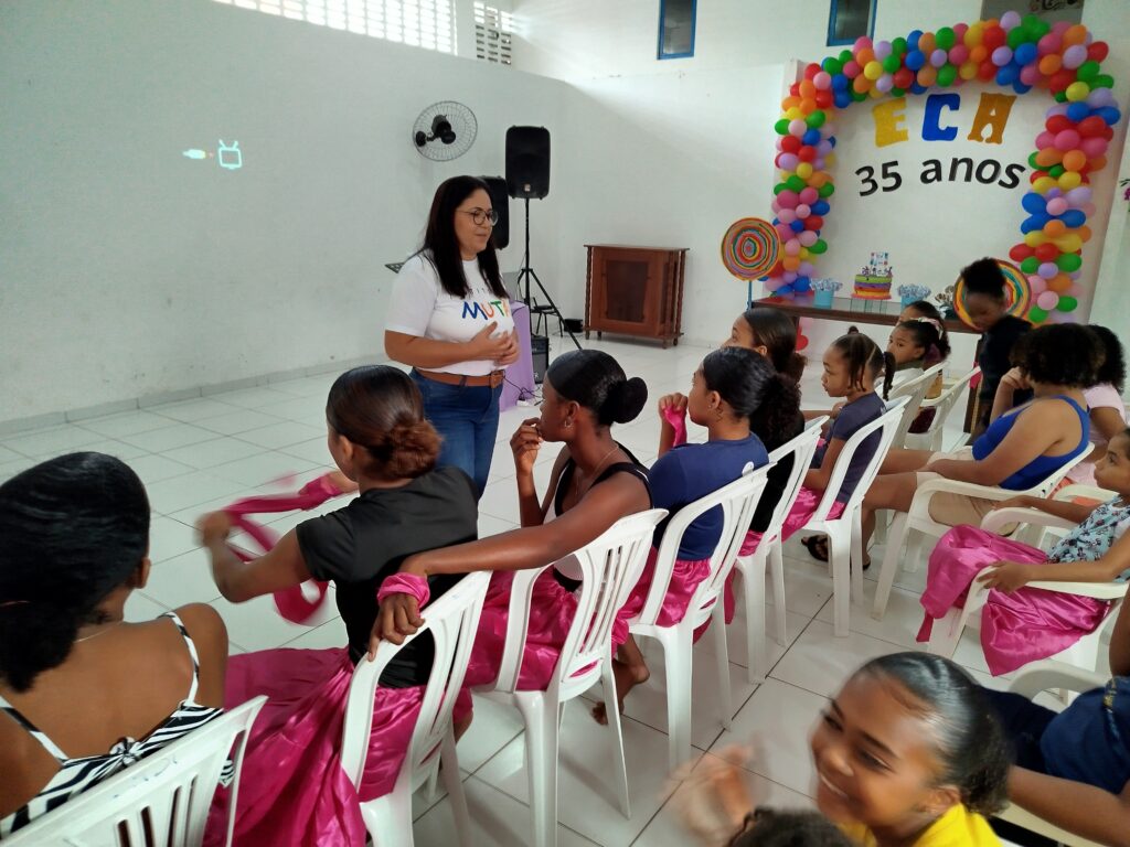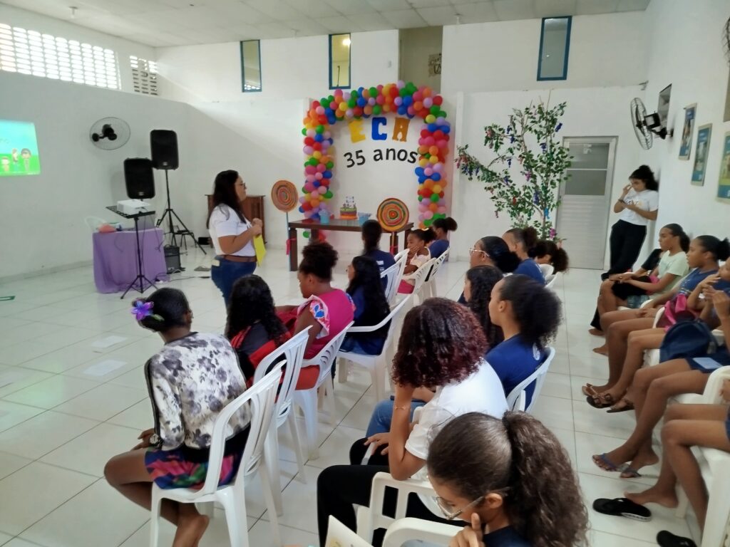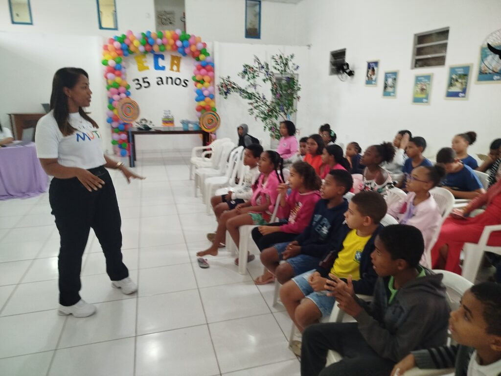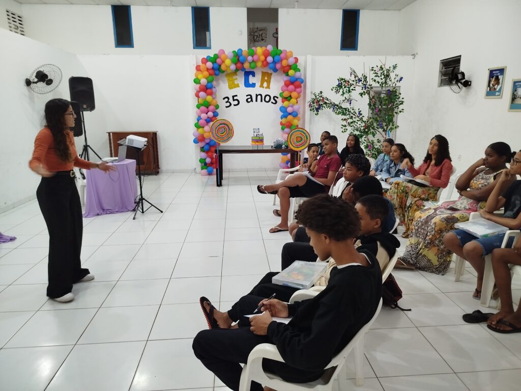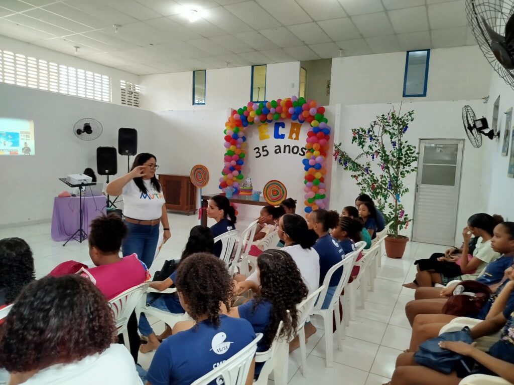 Celebramos os 35 anos do ECA com conhecimento, reflexão e compromisso coletivo! Nos dias 15 e 16 de julho, o Instituto Mutá CADI promoveu uma programação especial em homenagem ao Estatuto da Criança e do Adolescente, com o tema “Direitos que Transformam”. Foram dois dias intensos de palestras, aprendizados e trocas que mobilizaram todos os nossos alunos em torno da importância de conhecer, exercer e defender os direitos e deveres das crianças e adolescentes. Tivemos a honra de receber profissionais incríveis, que enriqueceram esse momento com suas trajetórias e experiências: Beatriz – Advogada, Patrícia Sousa – Assistente Social, Vanúzia Oliveira – Coordenadora Geral do CADI e Kailana Anjos – Advogada –Delegada da CAB OAB de Valença. Cada fala trouxe reflexões potentes sobre justiça, proteção e o papel de cada um na construção de uma sociedade mais justa para nossas crianças e adolescentes. E para encerrar com alegria e gratidão, celebramos com um parabéns simbólico, bolo e lanche coletivo, reforçando os laços de convivência, cuidado e união. Nosso agradecimento especial a todas palestrantes, educadores, equipe de apoio, alunos e parceiros. Vocês tornaram essa celebração possível e especial! Seguimos firmes no propósito de transformar a realidade com educação, acolhimento e ações concretas. Porque infância protegida é infância com futuro!Acompanhe os registros desses momentos e continue caminhando conosco nessa missão.