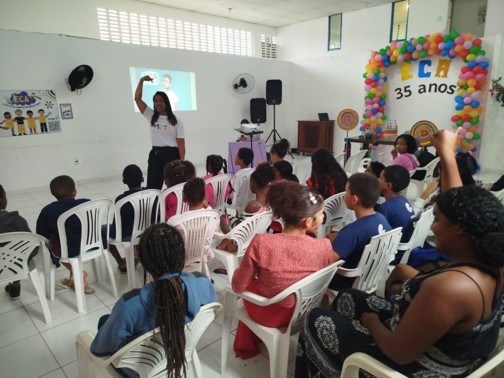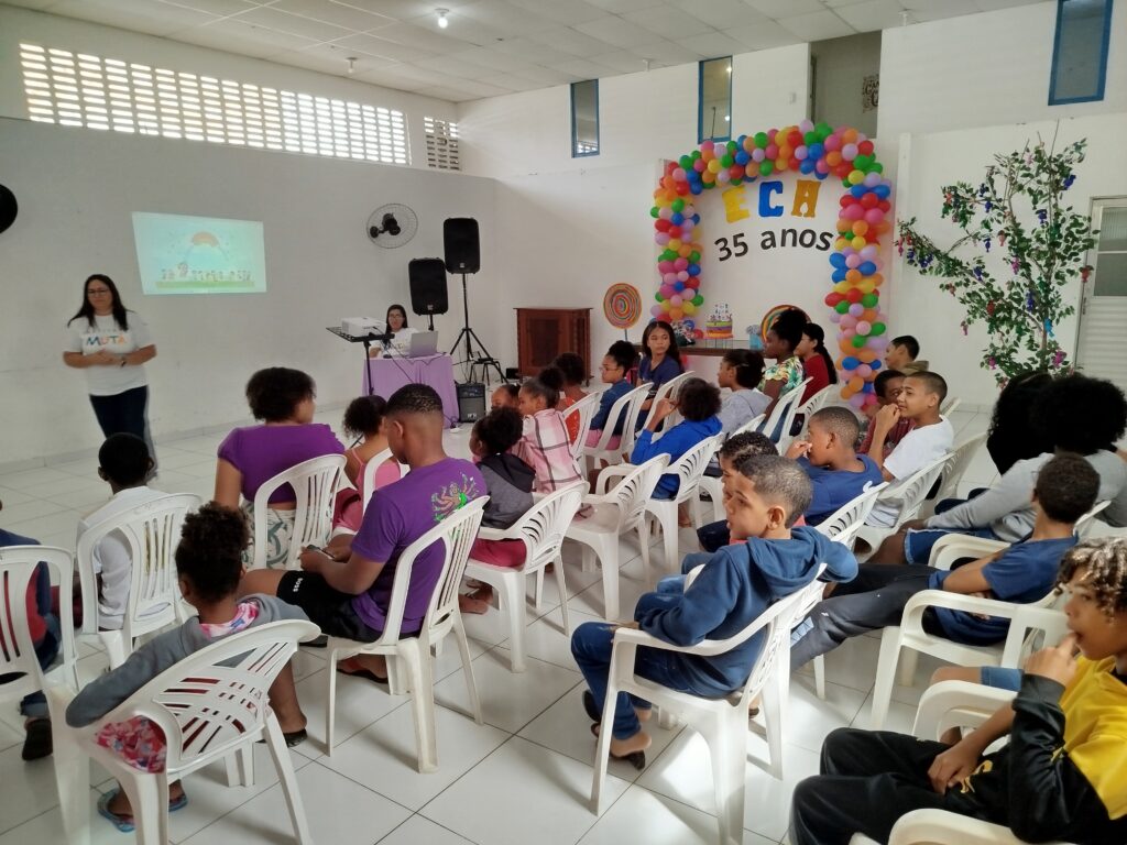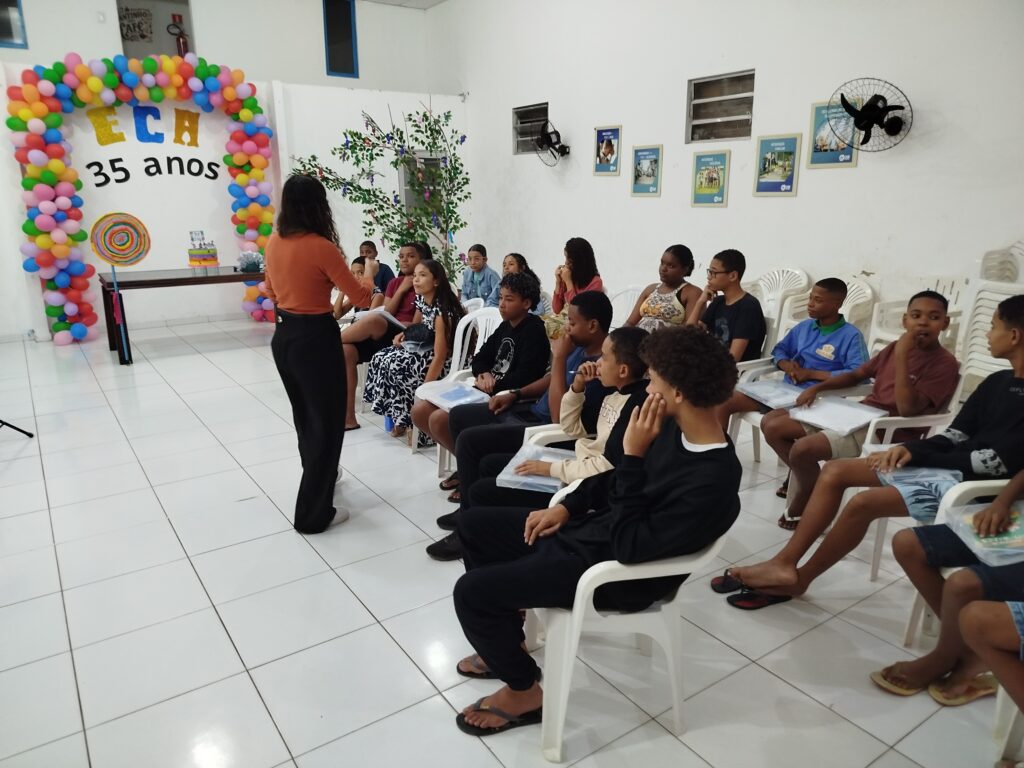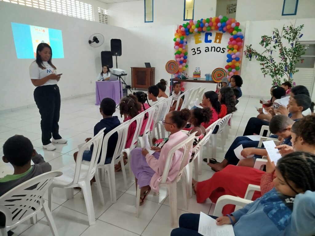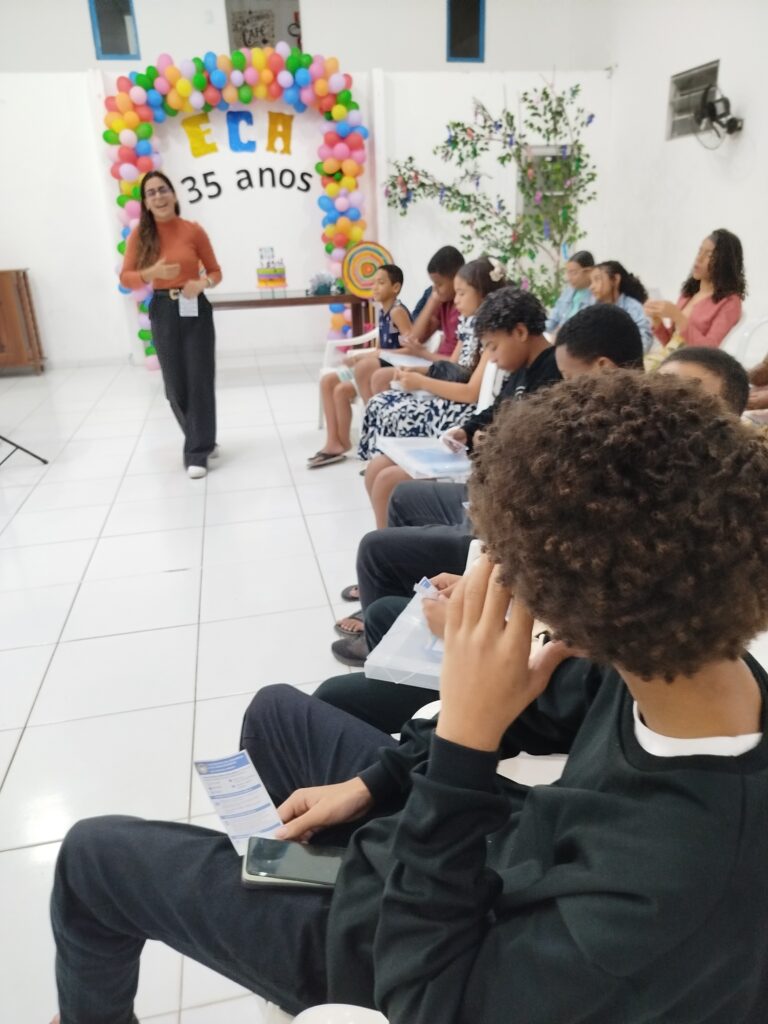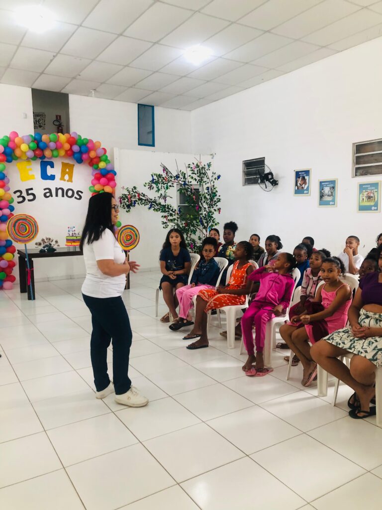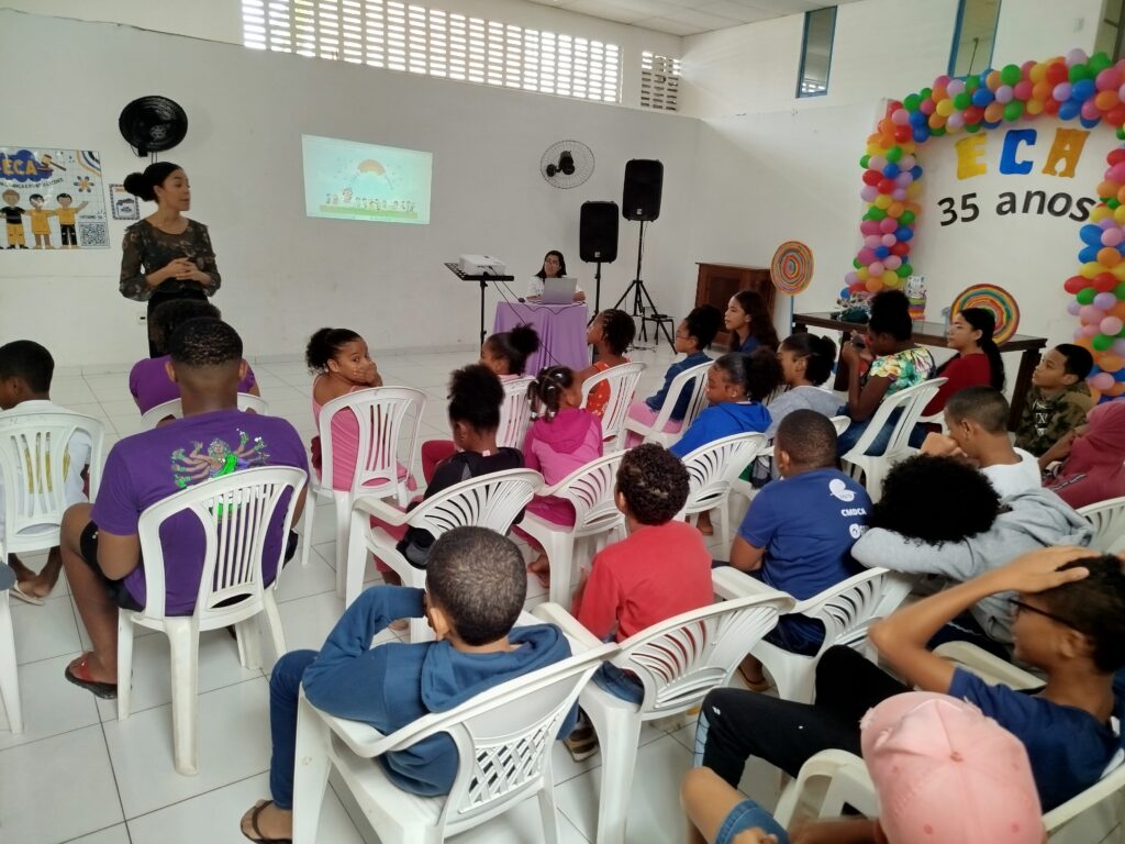 Celebramos os 35 anos do ECA com conhecimento, reflexão e compromisso coletivo! Nos dias 15 e 16 de julho, o Instituto Mutá CADI promoveu uma programação especial em homenagem ao Estatuto da Criança e do Adolescente, com o tema “Direitos que Transformam”. Foram dois dias intensos de palestras, aprendizados e trocas que mobilizaram todos os nossos alunos em torno da importância de conhecer, exercer e defender os direitos e deveres das crianças e adolescentes. Tivemos a honra de receber profissionais incríveis, que enriqueceram esse momento com suas trajetórias e experiências: Beatriz – Advogada, Patrícia Sousa – Assistente Social, Vanúzia Oliveira – Coordenadora Geral do CADI e Kailana Anjos – Advogada –Delegada da CAB OAB de Valença. Cada fala trouxe reflexões potentes sobre justiça, proteção e o papel de cada um na construção de uma sociedade mais justa para nossas crianças e adolescentes. E para encerrar com alegria e gratidão, celebramos com um parabéns simbólico, bolo e lanche coletivo, reforçando os laços de convivência, cuidado e união. Nosso agradecimento especial a todas palestrantes, educadores, equipe de apoio, alunos e parceiros. Vocês tornaram essa celebração possível e especial! Seguimos firmes no propósito de transformar a realidade com educação, acolhimento e ações concretas. Porque infância protegida é infância com futuro!Acompanhe os registros desses momentos e continue caminhando conosco nessa missão.
