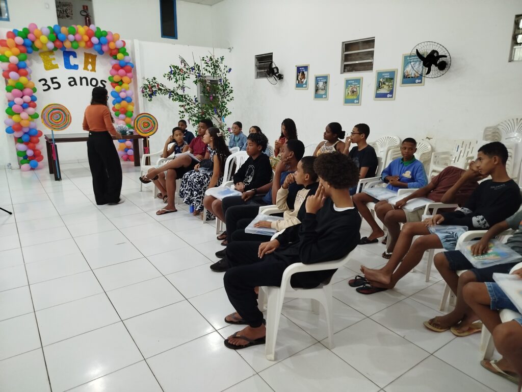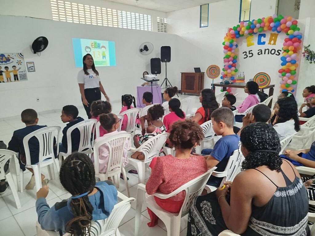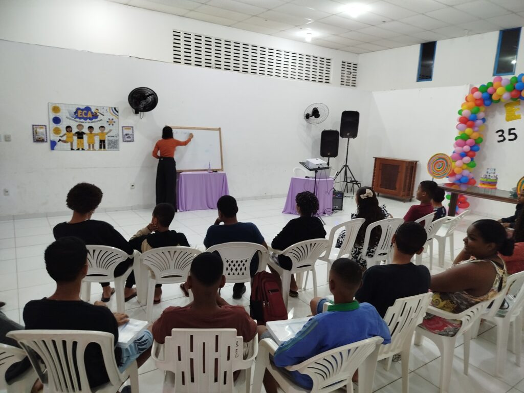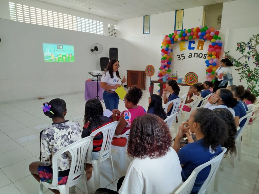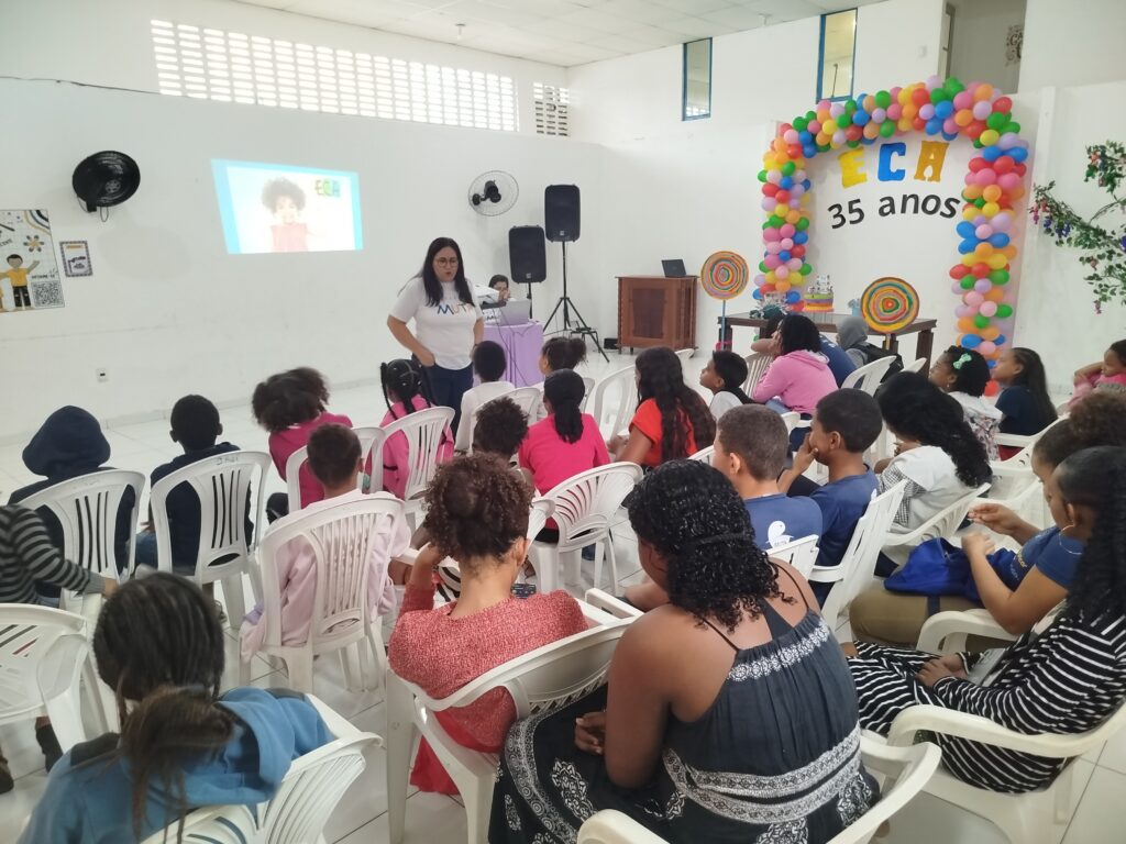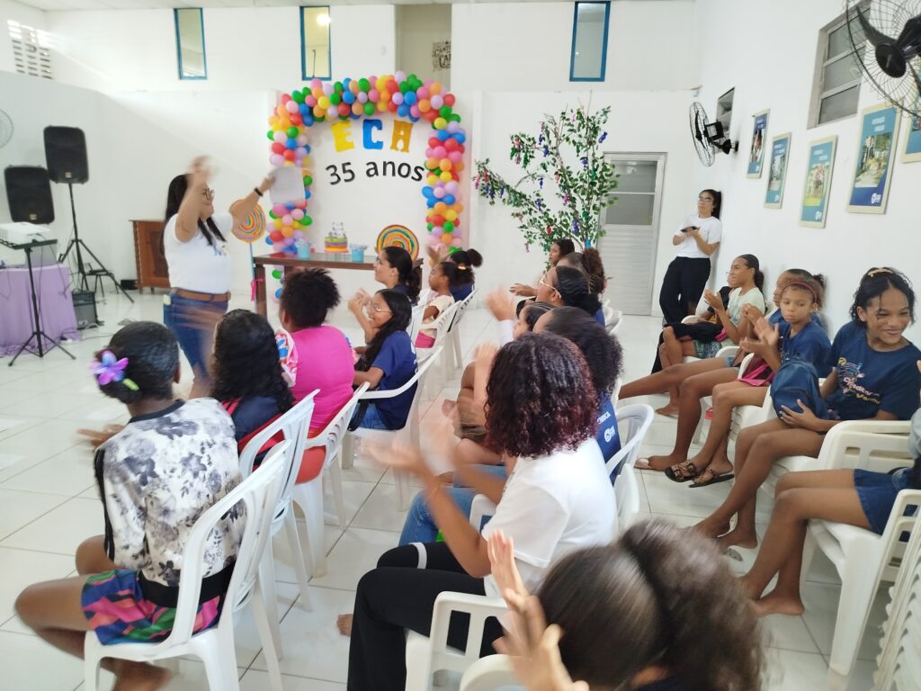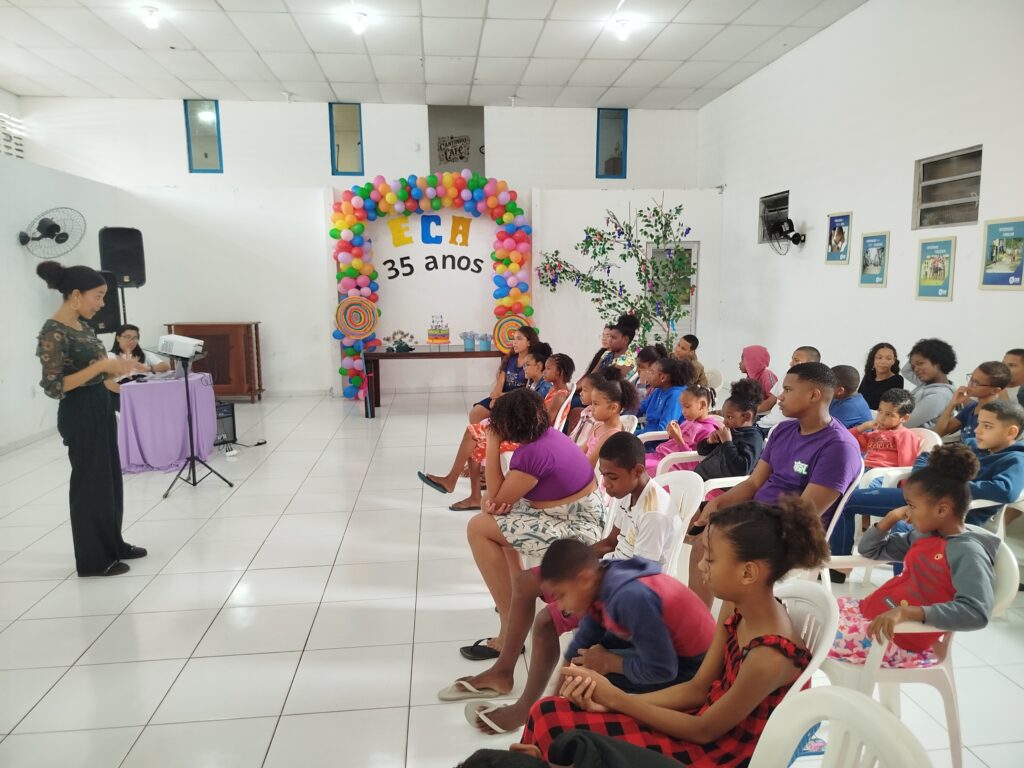 Celebramos os 35 anos do ECA com conhecimento, reflexão e compromisso coletivo! Nos dias 15 e 16 de julho, o Instituto Mutá CADI promoveu uma programação especial em homenagem ao Estatuto da Criança e do Adolescente, com o tema “Direitos que Transformam”. Foram dois dias intensos de palestras, aprendizados e trocas que mobilizaram todos os nossos alunos em torno da importância de conhecer, exercer e defender os direitos e deveres das crianças e adolescentes. Tivemos a honra de receber profissionais incríveis, que enriqueceram esse momento com suas trajetórias e experiências: Beatriz – Advogada, Patrícia Sousa – Assistente Social, Vanúzia Oliveira – Coordenadora Geral do CADI e Kailana Anjos – Advogada –Delegada da CAB OAB de Valença. Cada fala trouxe reflexões potentes sobre justiça, proteção e o papel de cada um na construção de uma sociedade mais justa para nossas crianças e adolescentes. E para encerrar com alegria e gratidão, celebramos com um parabéns simbólico, bolo e lanche coletivo, reforçando os laços de convivência, cuidado e união. Nosso agradecimento especial a todas palestrantes, educadores, equipe de apoio, alunos e parceiros. Vocês tornaram essa celebração possível e especial! Seguimos firmes no propósito de transformar a realidade com educação, acolhimento e ações concretas. Porque infância protegida é infância com futuro!Acompanhe os registros desses momentos e continue caminhando conosco nessa missão.