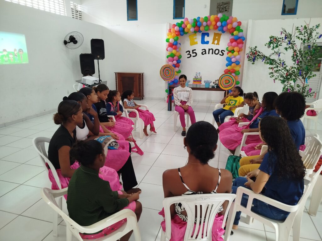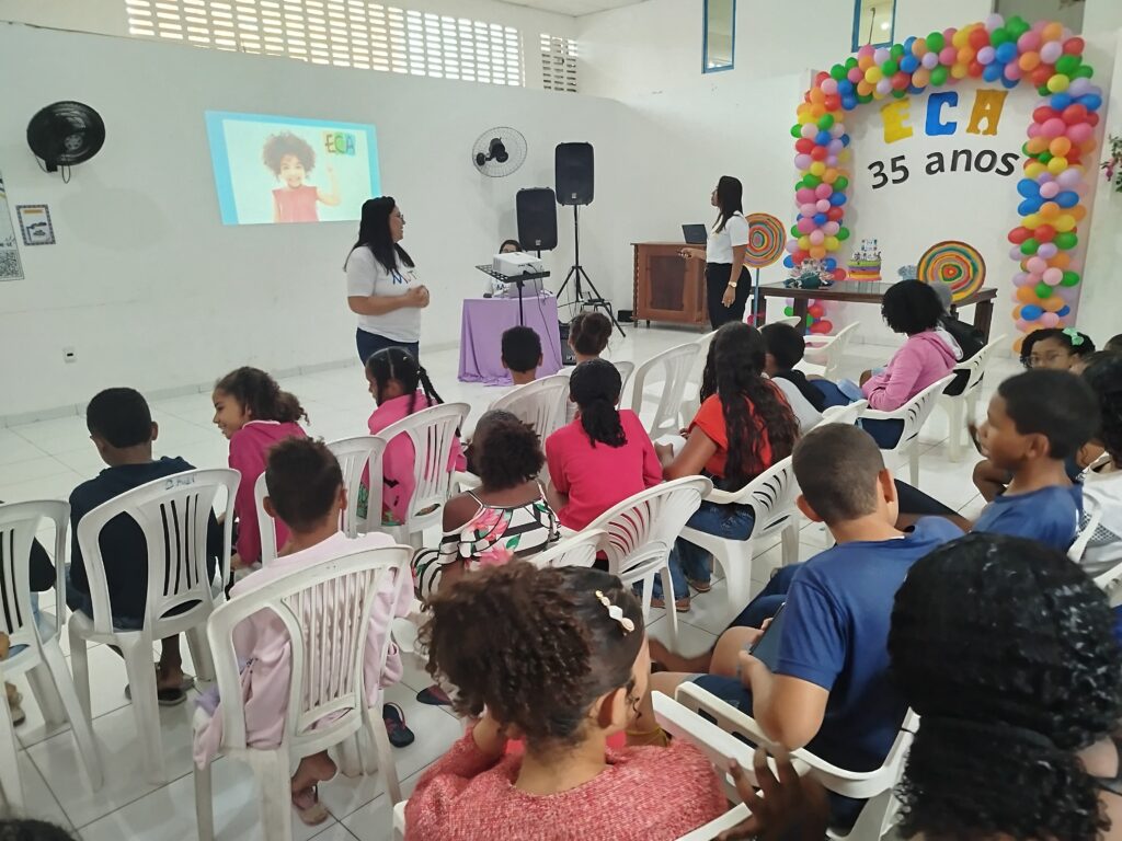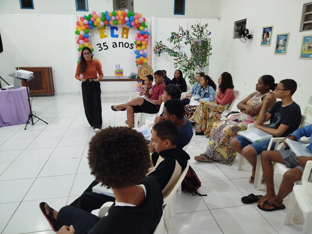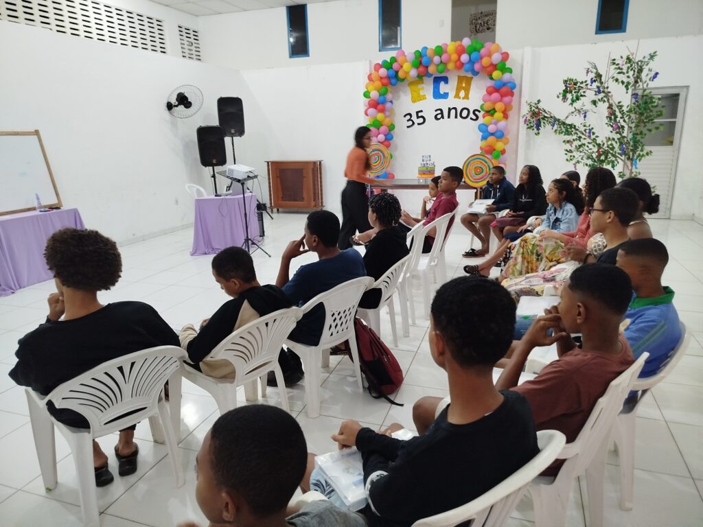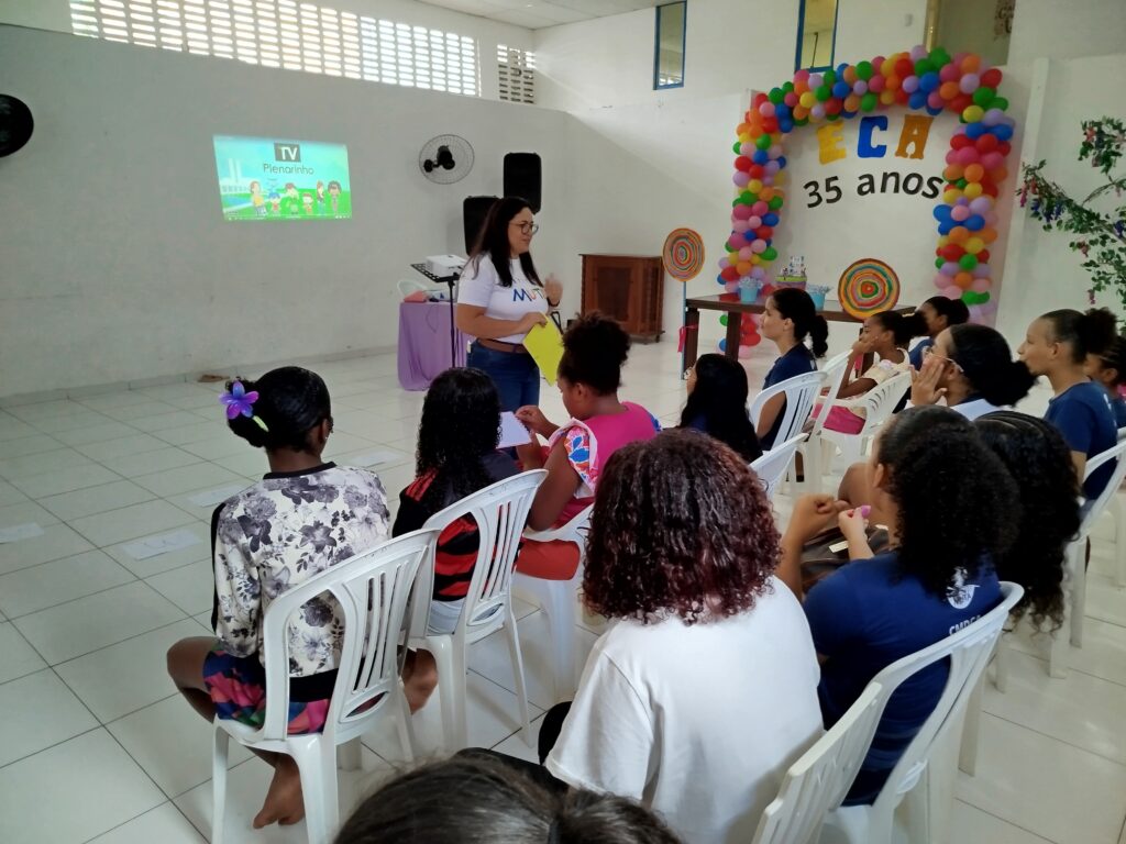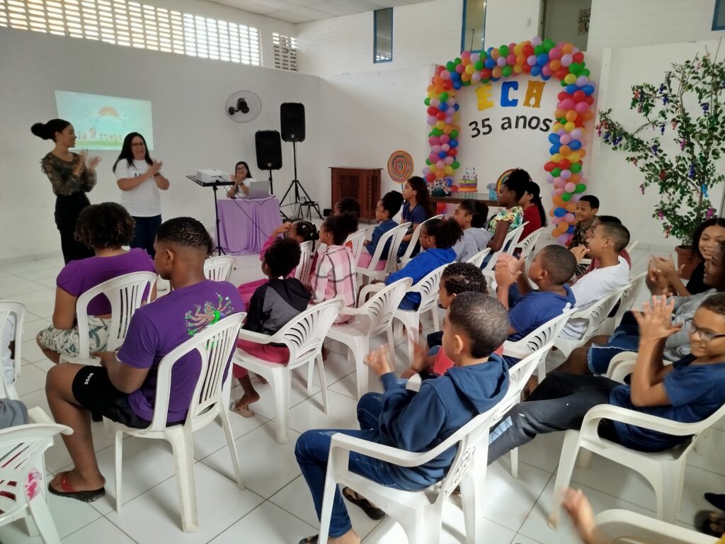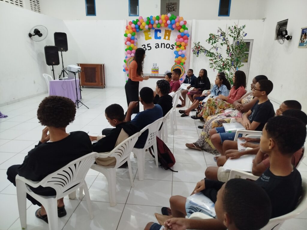 Celebramos os 35 anos do ECA com conhecimento, reflexão e compromisso coletivo! Nos dias 15 e 16 de julho, o Instituto Mutá CADI promoveu uma programação especial em homenagem ao Estatuto da Criança e do Adolescente, com o tema “Direitos que Transformam”. Foram dois dias intensos de palestras, aprendizados e trocas que mobilizaram todos os nossos alunos em torno da importância de conhecer, exercer e defender os direitos e deveres das crianças e adolescentes. Tivemos a honra de receber profissionais incríveis, que enriqueceram esse momento com suas trajetórias e experiências: Beatriz – Advogada, Patrícia Sousa – Assistente Social, Vanúzia Oliveira – Coordenadora Geral do CADI e Kailana Anjos – Advogada –Delegada da CAB OAB de Valença. Cada fala trouxe reflexões potentes sobre justiça, proteção e o papel de cada um na construção de uma sociedade mais justa para nossas crianças e adolescentes. E para encerrar com alegria e gratidão, celebramos com um parabéns simbólico, bolo e lanche coletivo, reforçando os laços de convivência, cuidado e união. Nosso agradecimento especial a todas palestrantes, educadores, equipe de apoio, alunos e parceiros. Vocês tornaram essa celebração possível e especial! Seguimos firmes no propósito de transformar a realidade com educação, acolhimento e ações concretas. Porque infância protegida é infância com futuro!Acompanhe os registros desses momentos e continue caminhando conosco nessa missão.
