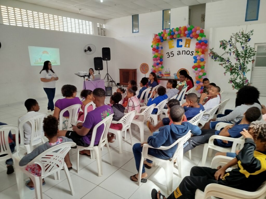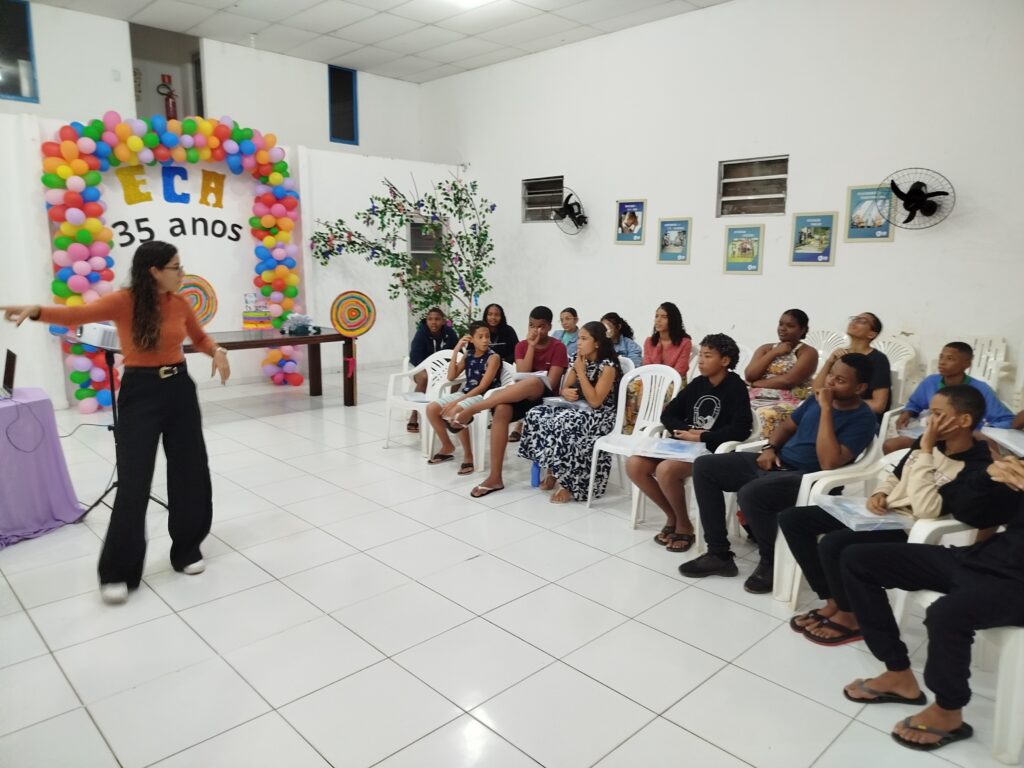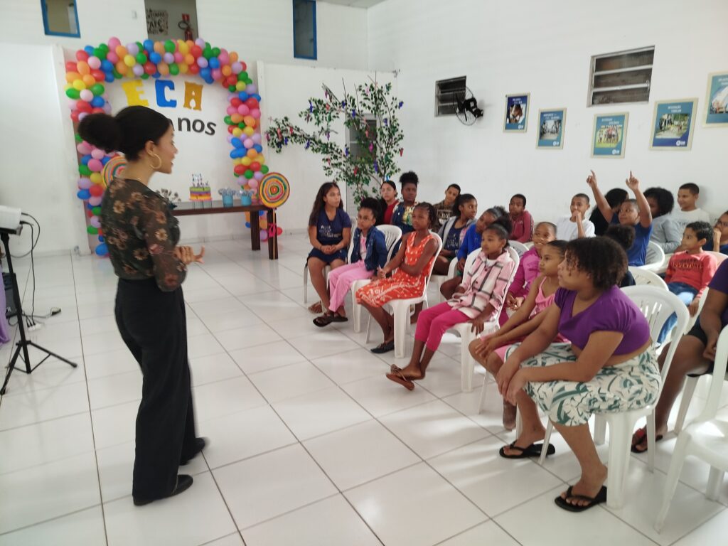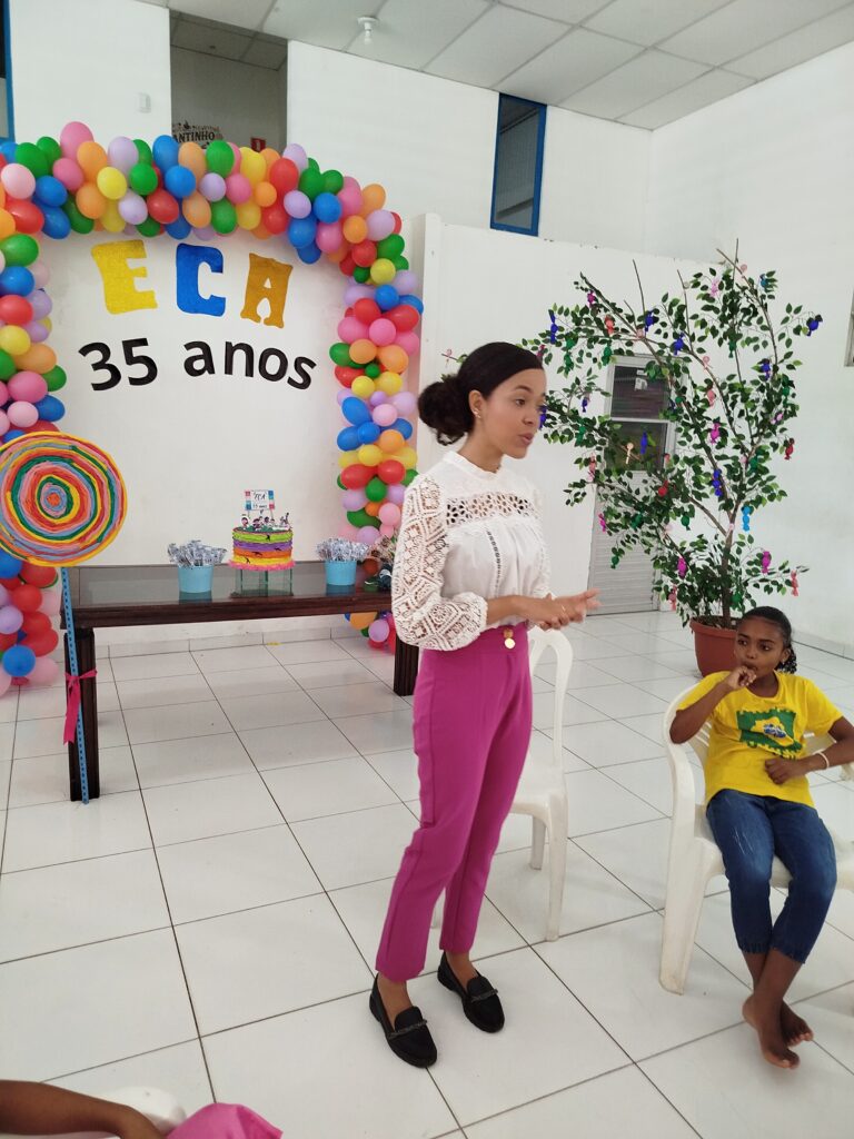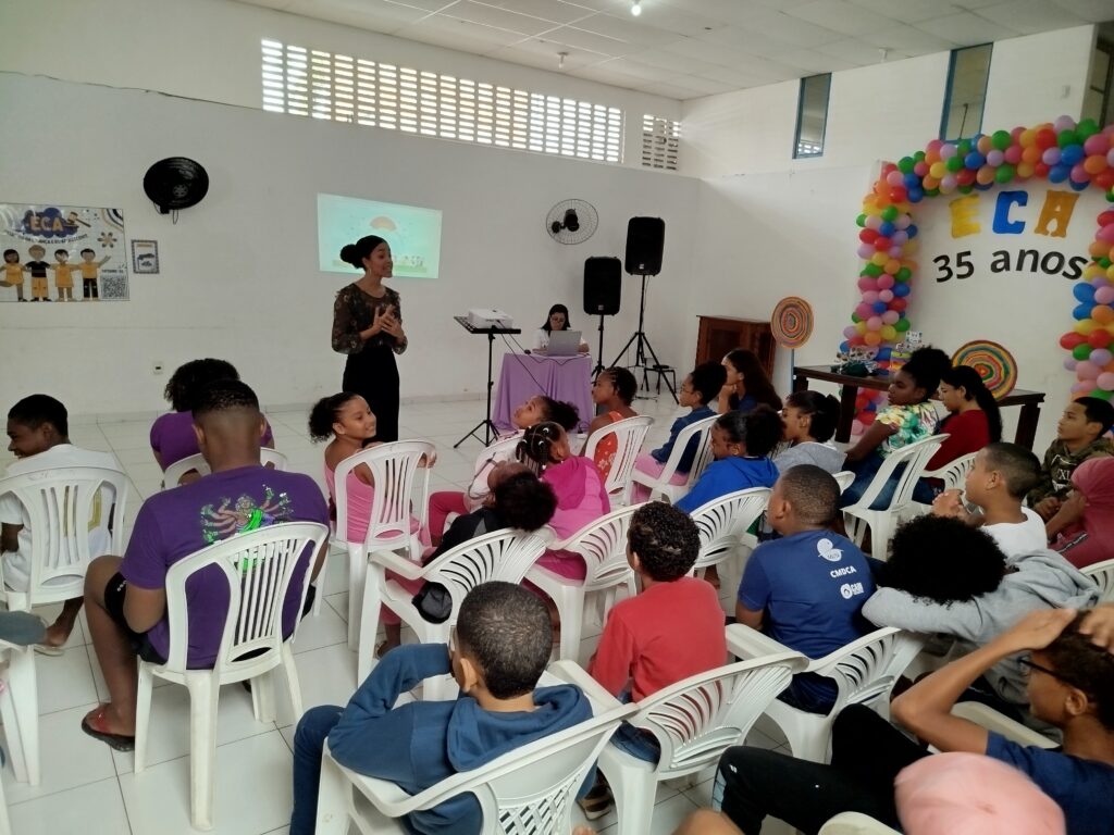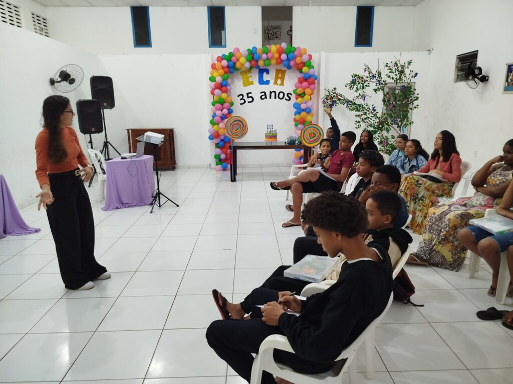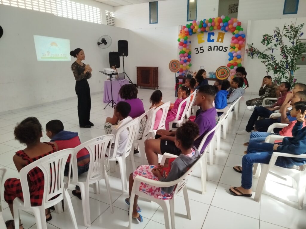 Celebramos os 35 anos do ECA com conhecimento, reflexão e compromisso coletivo! Nos dias 15 e 16 de julho, o Instituto Mutá CADI promoveu uma programação especial em homenagem ao Estatuto da Criança e do Adolescente, com o tema “Direitos que Transformam”. Foram dois dias intensos de palestras, aprendizados e trocas que mobilizaram todos os nossos alunos em torno da importância de conhecer, exercer e defender os direitos e deveres das crianças e adolescentes. Tivemos a honra de receber profissionais incríveis, que enriqueceram esse momento com suas trajetórias e experiências: Beatriz – Advogada, Patrícia Sousa – Assistente Social, Vanúzia Oliveira – Coordenadora Geral do CADI e Kailana Anjos – Advogada –Delegada da CAB OAB de Valença. Cada fala trouxe reflexões potentes sobre justiça, proteção e o papel de cada um na construção de uma sociedade mais justa para nossas crianças e adolescentes. E para encerrar com alegria e gratidão, celebramos com um parabéns simbólico, bolo e lanche coletivo, reforçando os laços de convivência, cuidado e união. Nosso agradecimento especial a todas palestrantes, educadores, equipe de apoio, alunos e parceiros. Vocês tornaram essa celebração possível e especial! Seguimos firmes no propósito de transformar a realidade com educação, acolhimento e ações concretas. Porque infância protegida é infância com futuro!Acompanhe os registros desses momentos e continue caminhando conosco nessa missão.