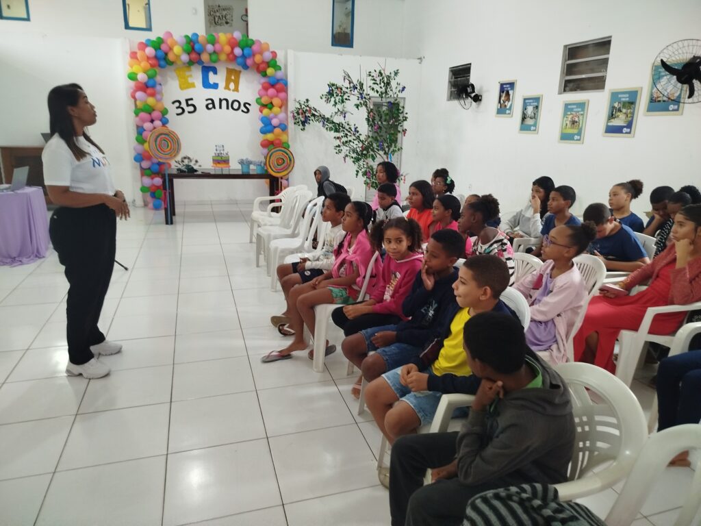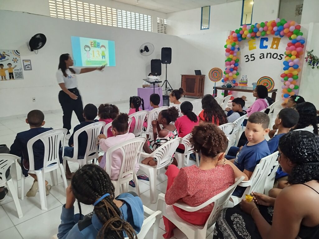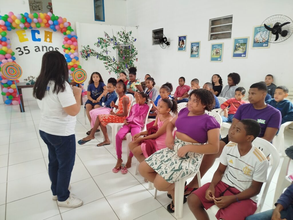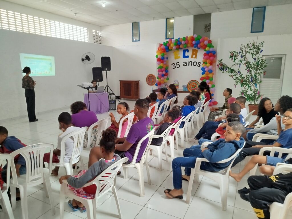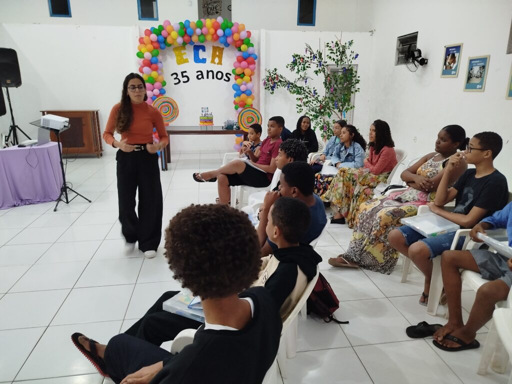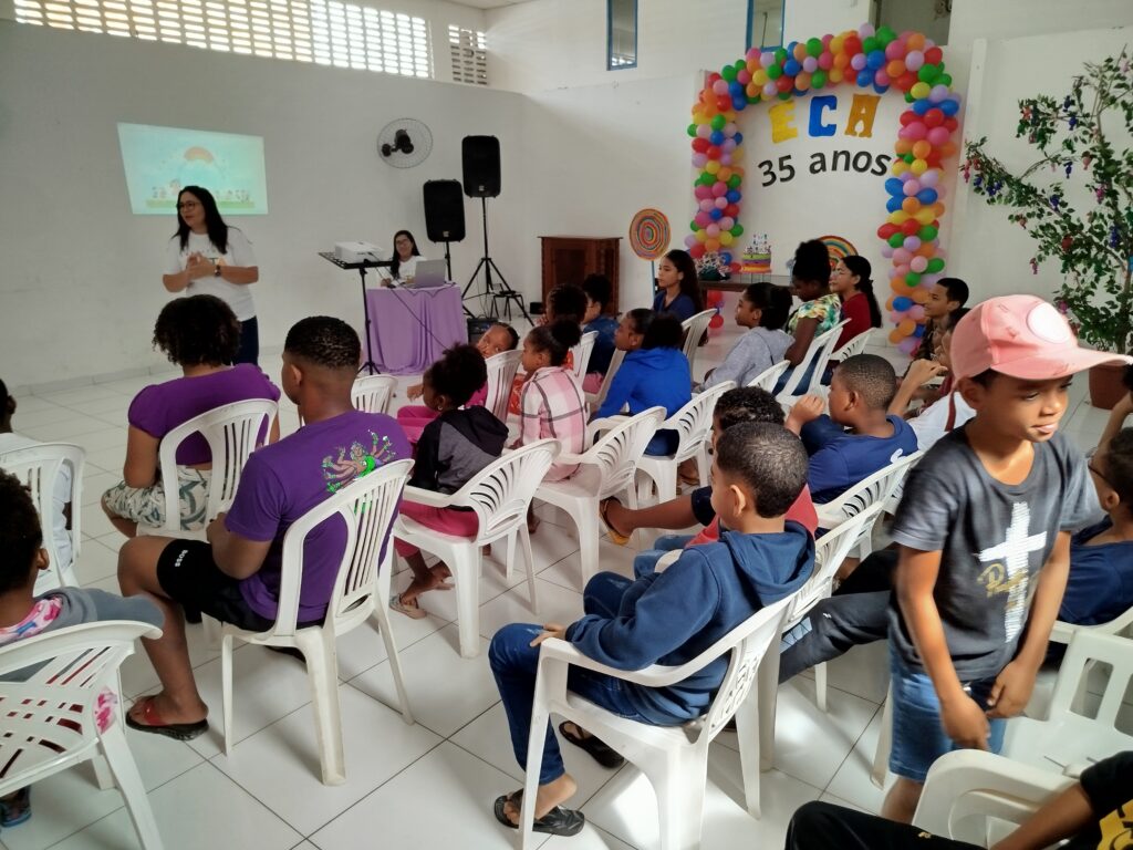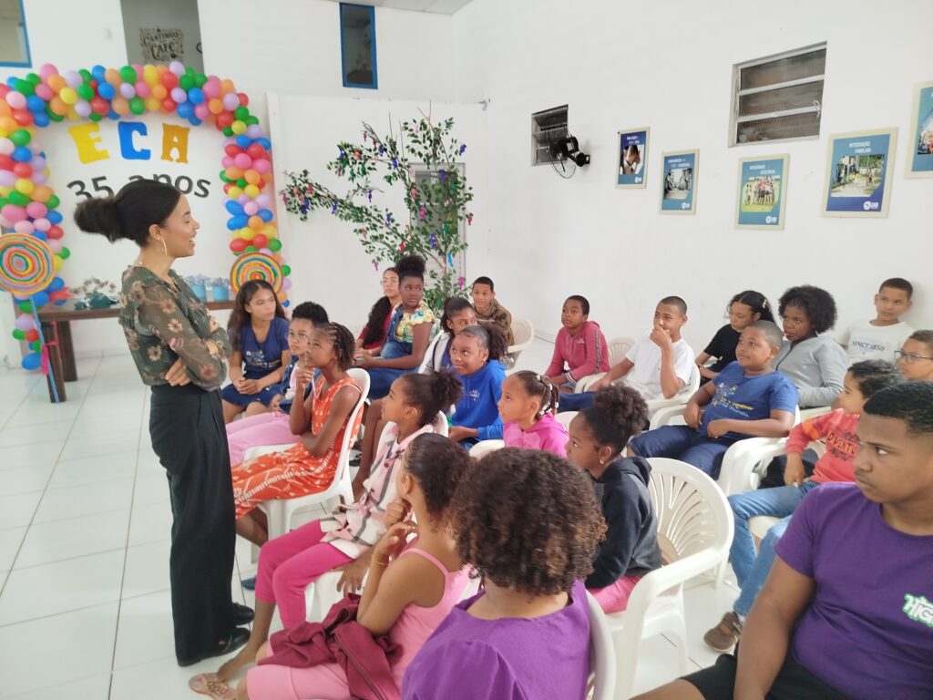 Celebramos os 35 anos do ECA com conhecimento, reflexão e compromisso coletivo! Nos dias 15 e 16 de julho, o Instituto Mutá CADI promoveu uma programação especial em homenagem ao Estatuto da Criança e do Adolescente, com o tema “Direitos que Transformam”. Foram dois dias intensos de palestras, aprendizados e trocas que mobilizaram todos os nossos alunos em torno da importância de conhecer, exercer e defender os direitos e deveres das crianças e adolescentes. Tivemos a honra de receber profissionais incríveis, que enriqueceram esse momento com suas trajetórias e experiências: Beatriz – Advogada, Patrícia Sousa – Assistente Social, Vanúzia Oliveira – Coordenadora Geral do CADI e Kailana Anjos – Advogada –Delegada da CAB OAB de Valença. Cada fala trouxe reflexões potentes sobre justiça, proteção e o papel de cada um na construção de uma sociedade mais justa para nossas crianças e adolescentes. E para encerrar com alegria e gratidão, celebramos com um parabéns simbólico, bolo e lanche coletivo, reforçando os laços de convivência, cuidado e união. Nosso agradecimento especial a todas palestrantes, educadores, equipe de apoio, alunos e parceiros. Vocês tornaram essa celebração possível e especial! Seguimos firmes no propósito de transformar a realidade com educação, acolhimento e ações concretas. Porque infância protegida é infância com futuro!Acompanhe os registros desses momentos e continue caminhando conosco nessa missão.