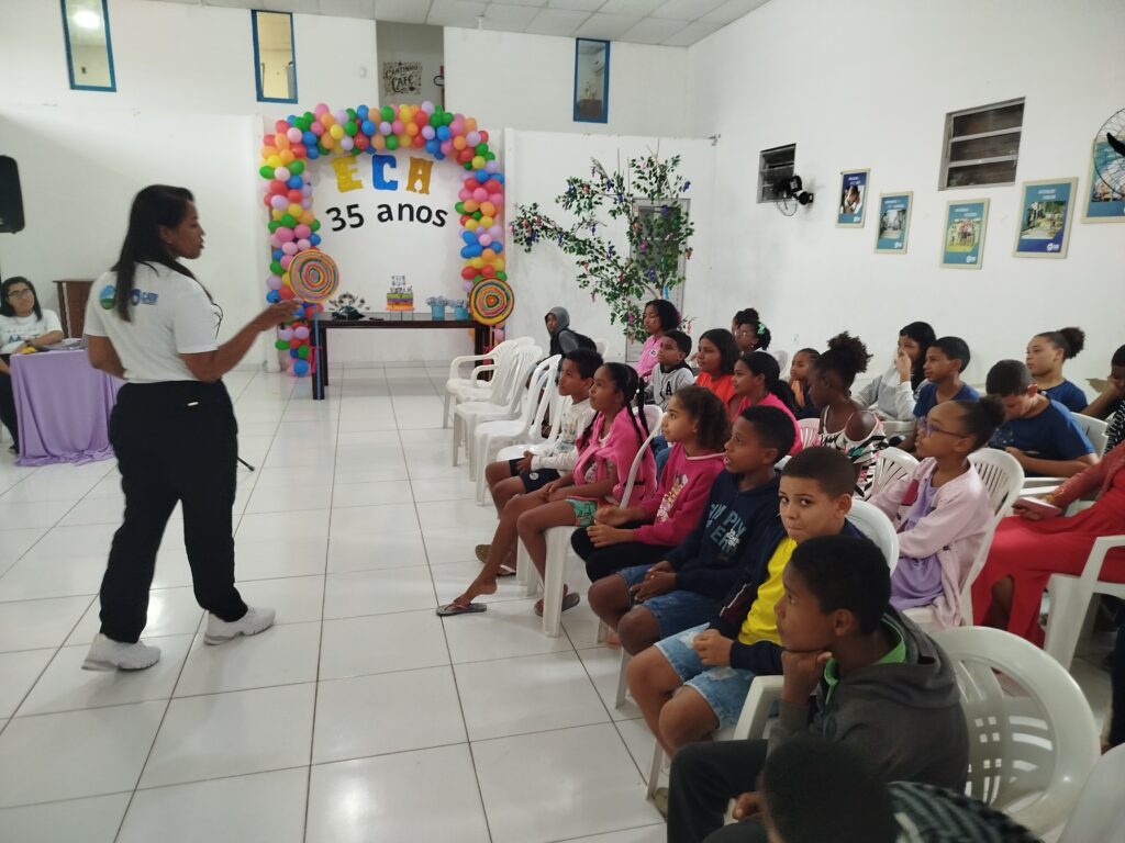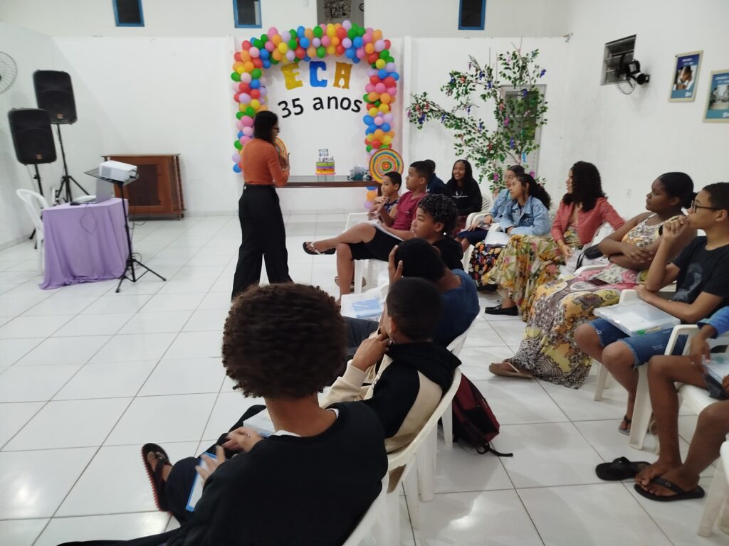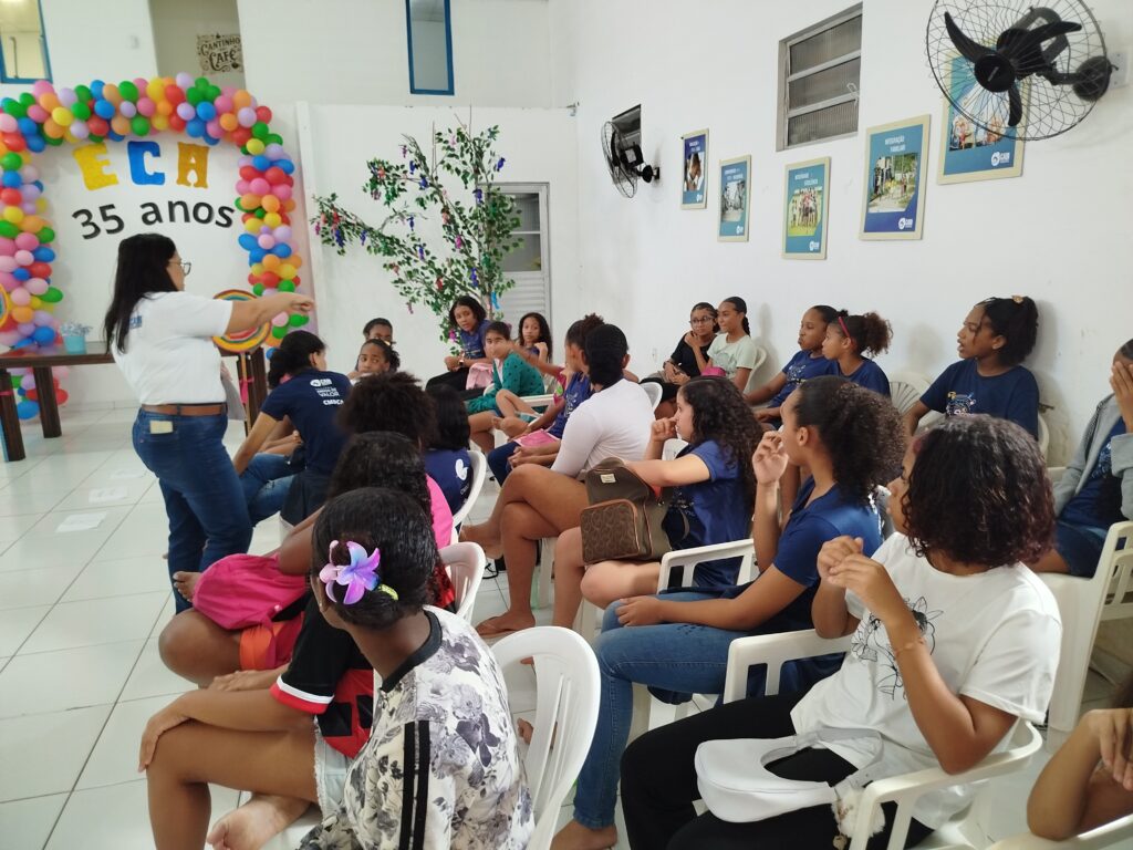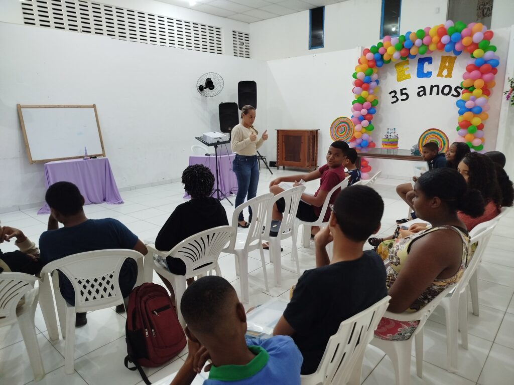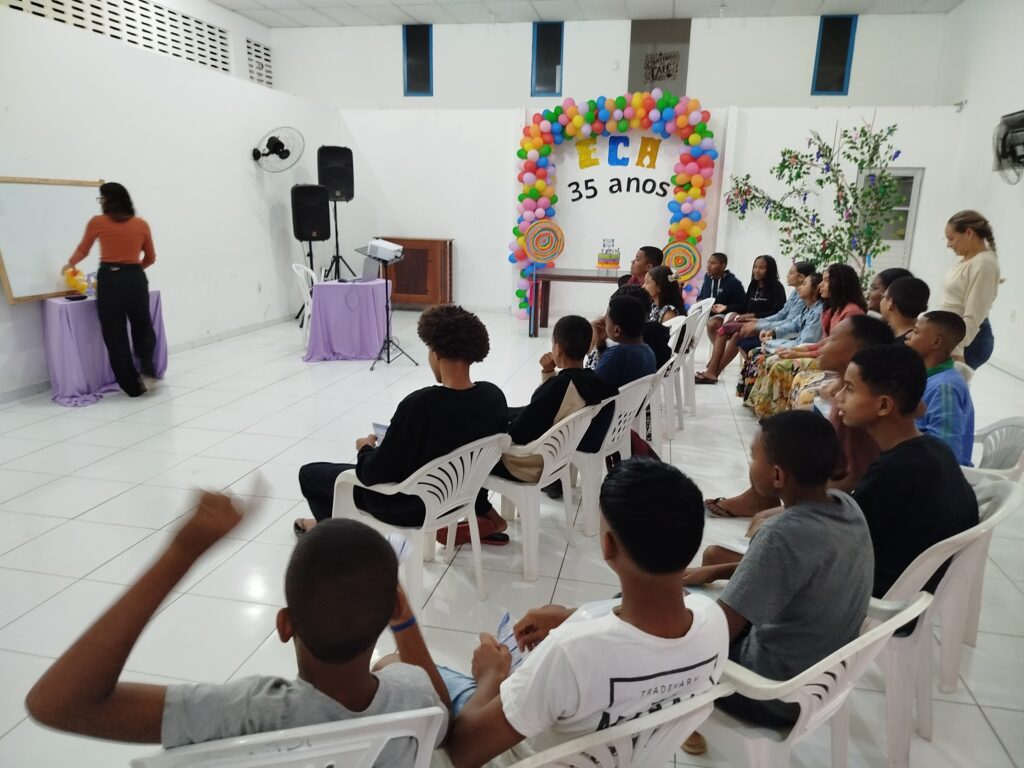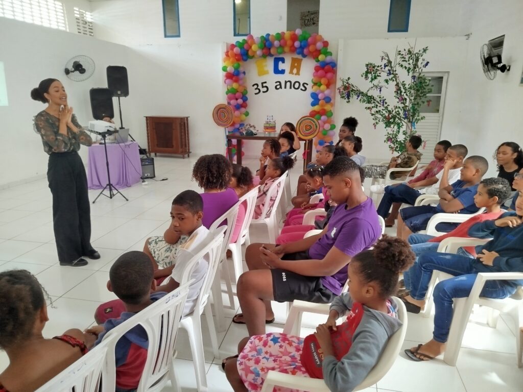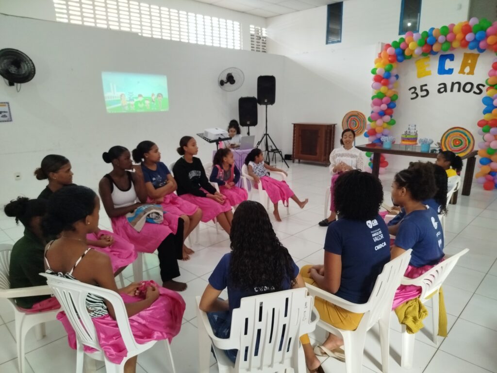 Celebramos os 35 anos do ECA com conhecimento, reflexão e compromisso coletivo! Nos dias 15 e 16 de julho, o Instituto Mutá CADI promoveu uma programação especial em homenagem ao Estatuto da Criança e do Adolescente, com o tema “Direitos que Transformam”. Foram dois dias intensos de palestras, aprendizados e trocas que mobilizaram todos os nossos alunos em torno da importância de conhecer, exercer e defender os direitos e deveres das crianças e adolescentes. Tivemos a honra de receber profissionais incríveis, que enriqueceram esse momento com suas trajetórias e experiências: Beatriz – Advogada, Patrícia Sousa – Assistente Social, Vanúzia Oliveira – Coordenadora Geral do CADI e Kailana Anjos – Advogada –Delegada da CAB OAB de Valença. Cada fala trouxe reflexões potentes sobre justiça, proteção e o papel de cada um na construção de uma sociedade mais justa para nossas crianças e adolescentes. E para encerrar com alegria e gratidão, celebramos com um parabéns simbólico, bolo e lanche coletivo, reforçando os laços de convivência, cuidado e união. Nosso agradecimento especial a todas palestrantes, educadores, equipe de apoio, alunos e parceiros. Vocês tornaram essa celebração possível e especial! Seguimos firmes no propósito de transformar a realidade com educação, acolhimento e ações concretas. Porque infância protegida é infância com futuro!Acompanhe os registros desses momentos e continue caminhando conosco nessa missão.