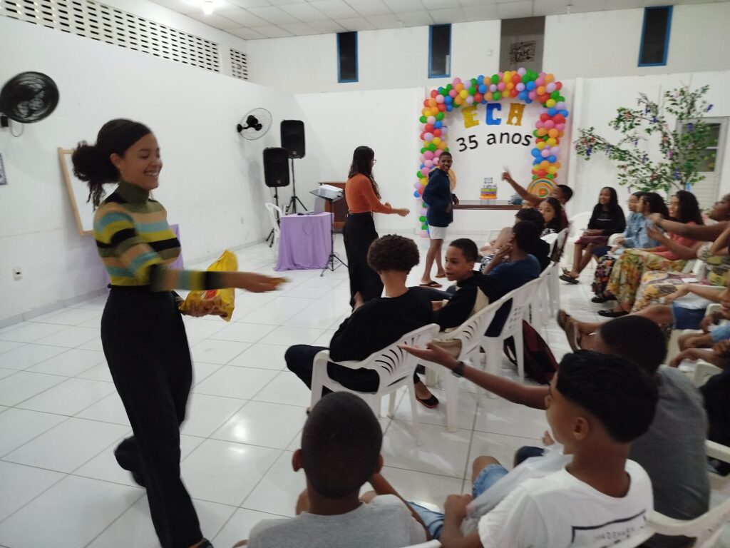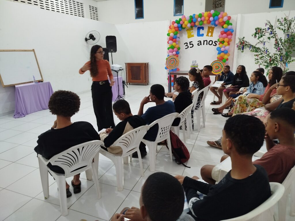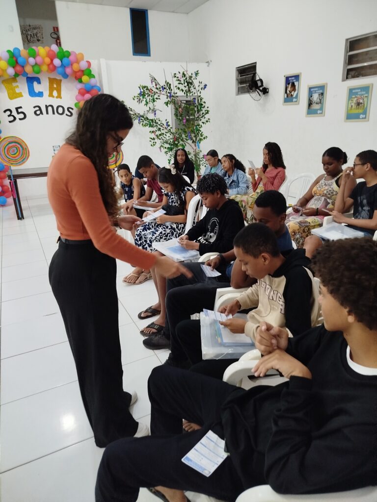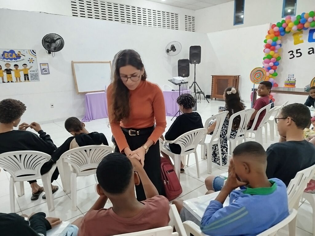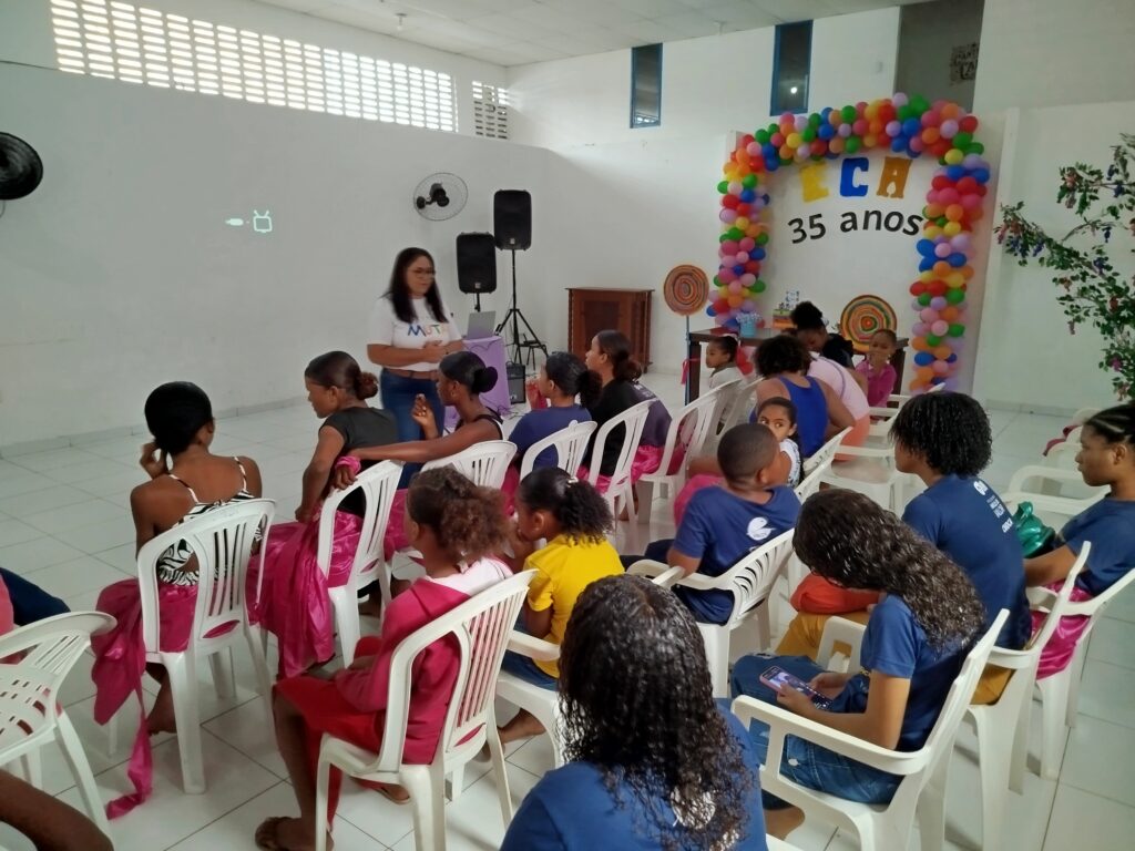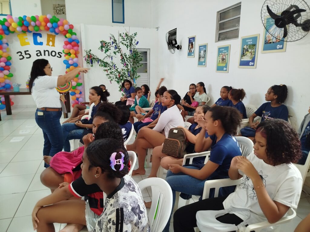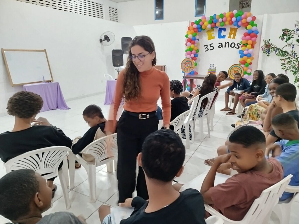 Celebramos os 35 anos do ECA com conhecimento, reflexão e compromisso coletivo! Nos dias 15 e 16 de julho, o Instituto Mutá CADI promoveu uma programação especial em homenagem ao Estatuto da Criança e do Adolescente, com o tema “Direitos que Transformam”. Foram dois dias intensos de palestras, aprendizados e trocas que mobilizaram todos os nossos alunos em torno da importância de conhecer, exercer e defender os direitos e deveres das crianças e adolescentes. Tivemos a honra de receber profissionais incríveis, que enriqueceram esse momento com suas trajetórias e experiências: Beatriz – Advogada, Patrícia Sousa – Assistente Social, Vanúzia Oliveira – Coordenadora Geral do CADI e Kailana Anjos – Advogada –Delegada da CAB OAB de Valença. Cada fala trouxe reflexões potentes sobre justiça, proteção e o papel de cada um na construção de uma sociedade mais justa para nossas crianças e adolescentes. E para encerrar com alegria e gratidão, celebramos com um parabéns simbólico, bolo e lanche coletivo, reforçando os laços de convivência, cuidado e união. Nosso agradecimento especial a todas palestrantes, educadores, equipe de apoio, alunos e parceiros. Vocês tornaram essa celebração possível e especial! Seguimos firmes no propósito de transformar a realidade com educação, acolhimento e ações concretas. Porque infância protegida é infância com futuro!Acompanhe os registros desses momentos e continue caminhando conosco nessa missão.