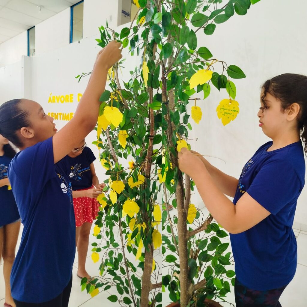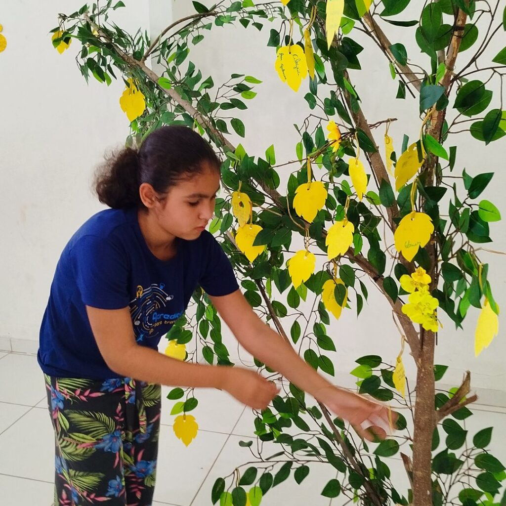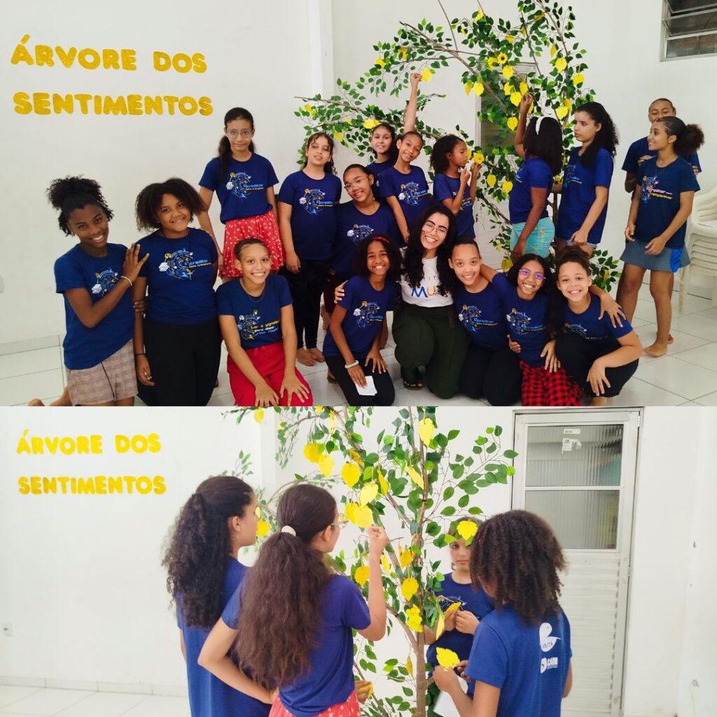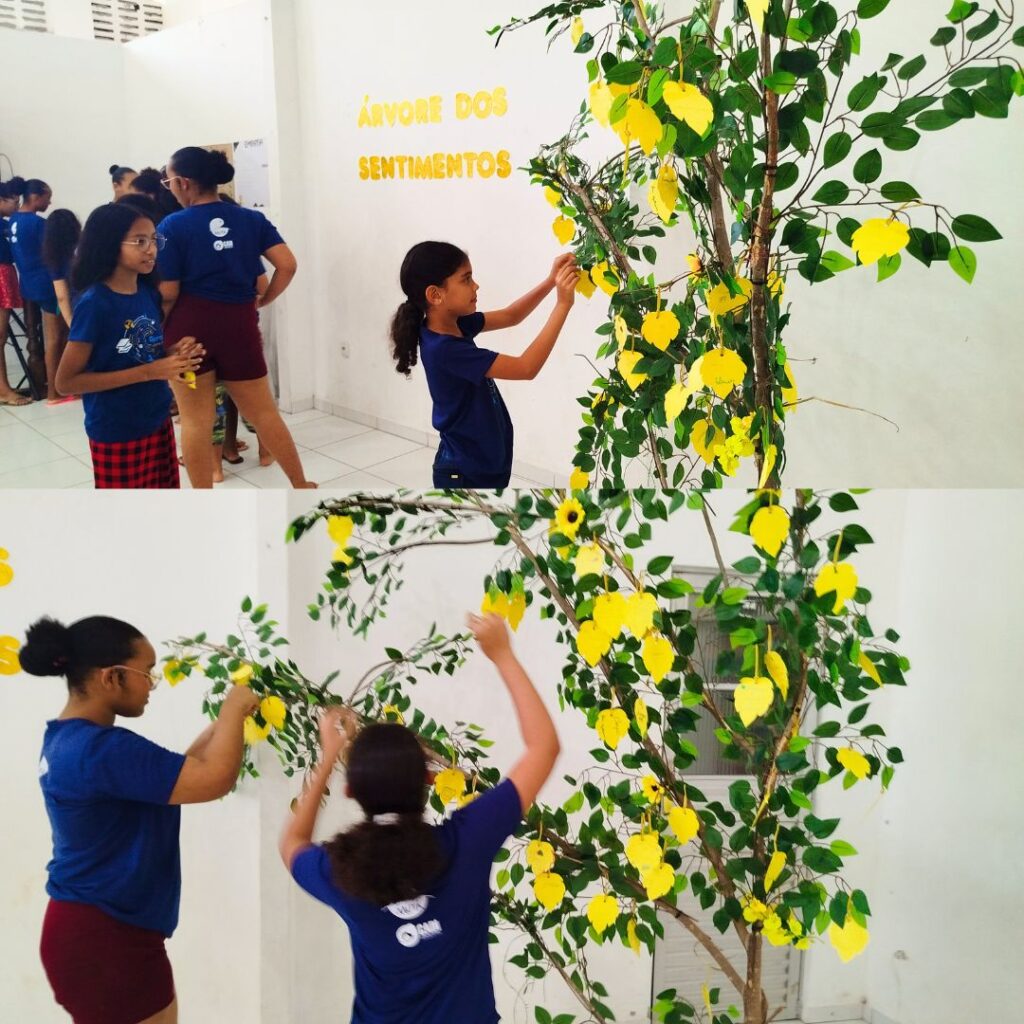 Promovemos atividades lúdicas que despertaram a criatividade e abriram espaço para a expressão das emoções. Um dos momentos mais marcantes foi a dinâmica coletiva da “Árvore de Sentimentos”, onde cada participante pôde compartilhar percepções, sentimentos e aprendizados.