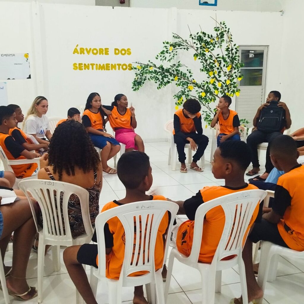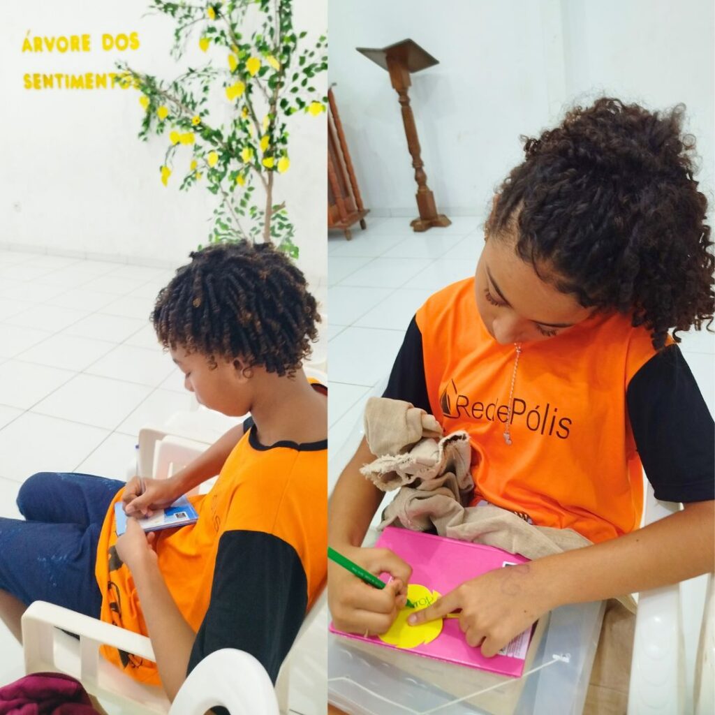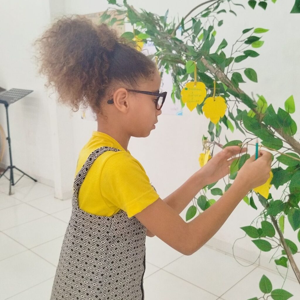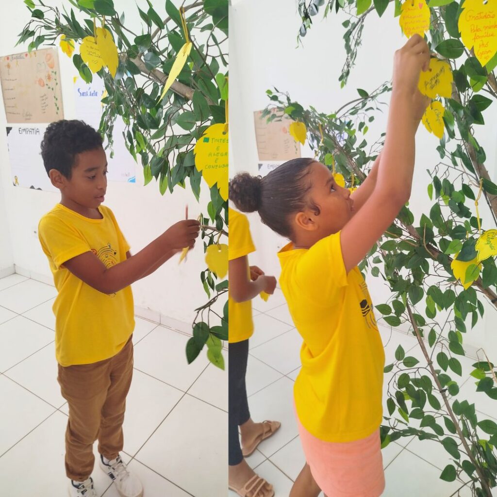 Promovemos atividades lúdicas que despertaram a criatividade e abriram espaço para a expressão das emoções. Um dos momentos mais marcantes foi a dinâmica coletiva da “Árvore de Sentimentos”, onde cada participante pôde compartilhar percepções, sentimentos e aprendizados.